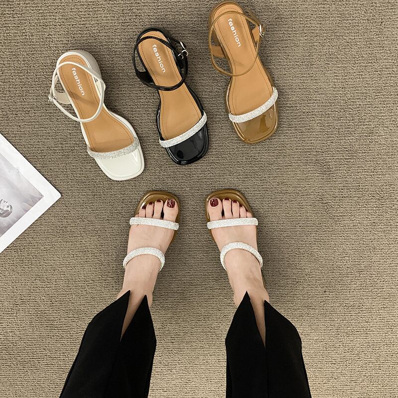 サンダル2022レディースニューサマーオールマッチウエスタンスタイルレトロラインストーンシックヒールノンスリップネットレッドワンワードベルトハイヒール 靴 シューズ 夏物 ハーネス jxjxf24659656992