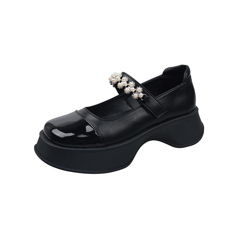 小さな革の靴女性の2022年夏の新しいパールベルクロ厚いヒール滑り止めファッションオールマッチレトロメアリージェーン靴 シューズ サマー 夏物 レザー 真珠 jxjxf81301681702