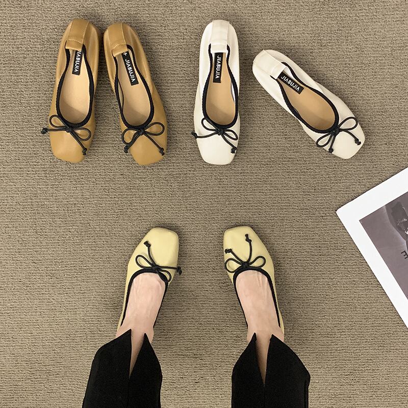 浅い口のシングルシューズ女性の2022年夏の新しいファッションレトロワイルドボウスクエアヘッドローヒール滑り止めの小さな革の靴 リボン サマー 夏物 レザー スクウェア jxjxf11568473345
