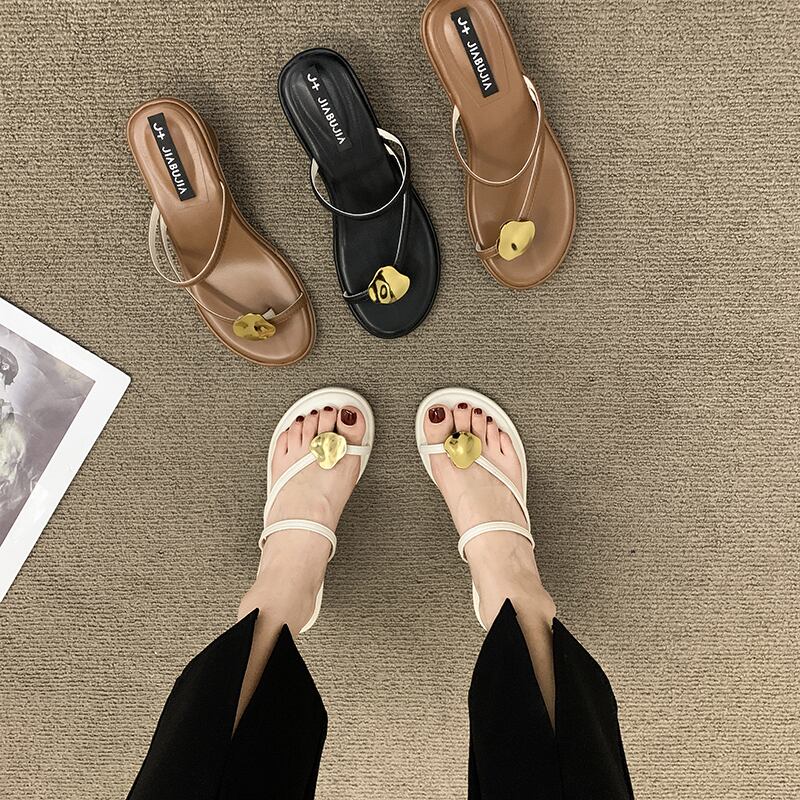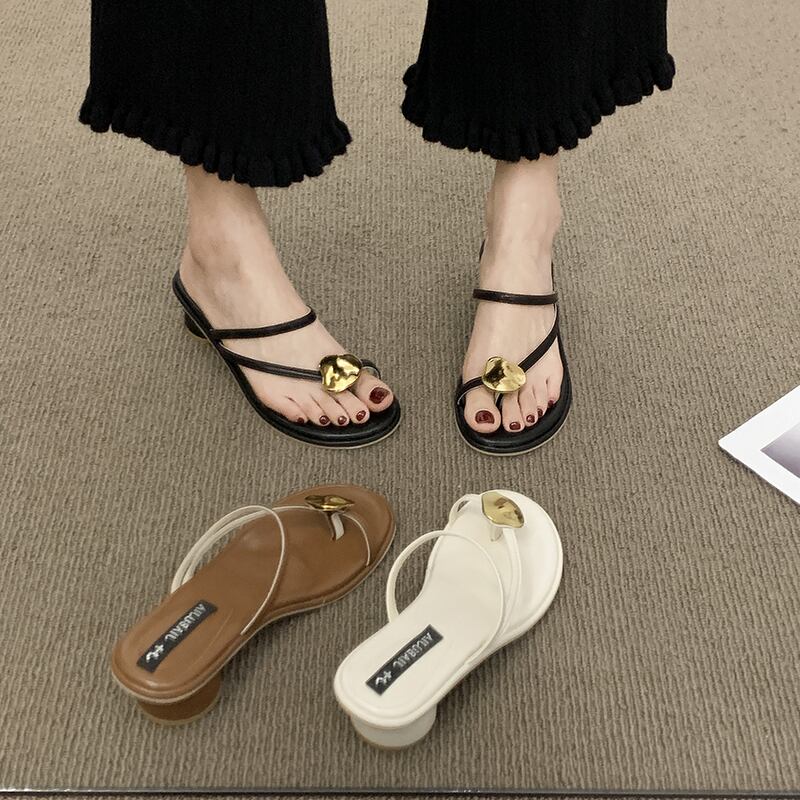 サンダルとスリッパ女性の2022年夏新しいメタル厚手のヒール滑り止めネットレッドファッションオールマッチビーチセットトゥスリッパ ミュール 靴 シューズ サマー 夏物 jxjxf83202640730