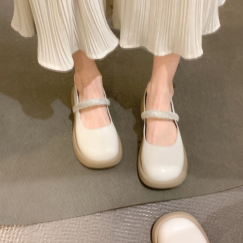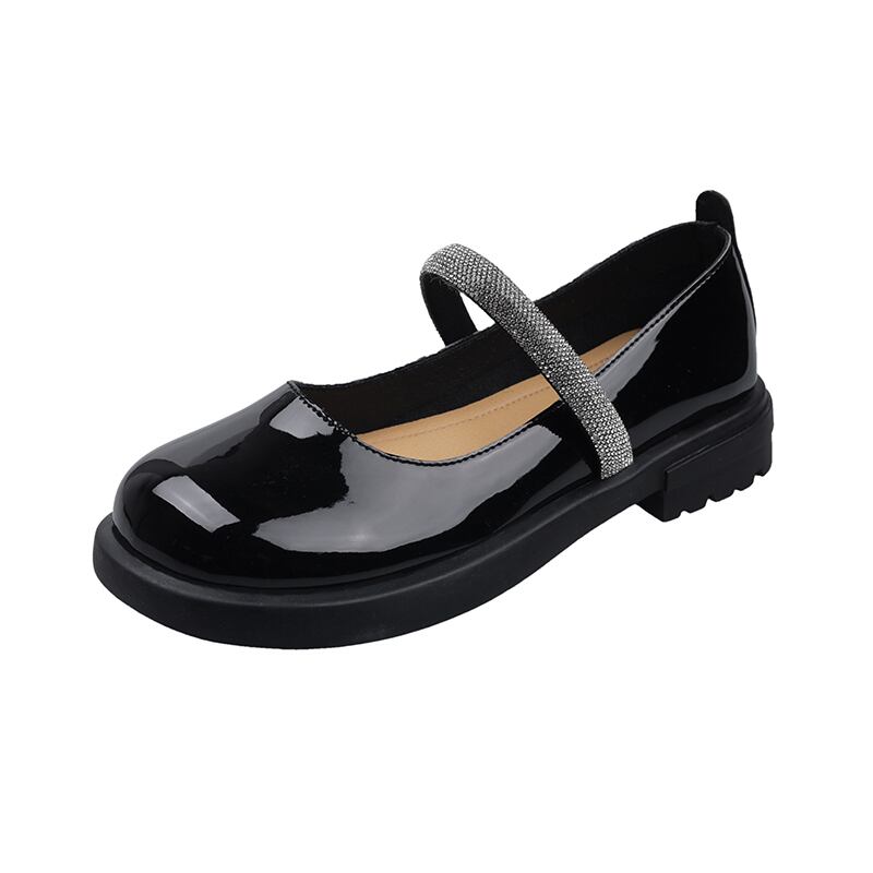 シングルシューズ女性の2022年夏の新しいファッションオールマッチラウンドヘッドレトロラインストーンフラットボトム滑り止めの小さな革の靴の潮流 サマー 夏物 レザー jxjxf50078306372