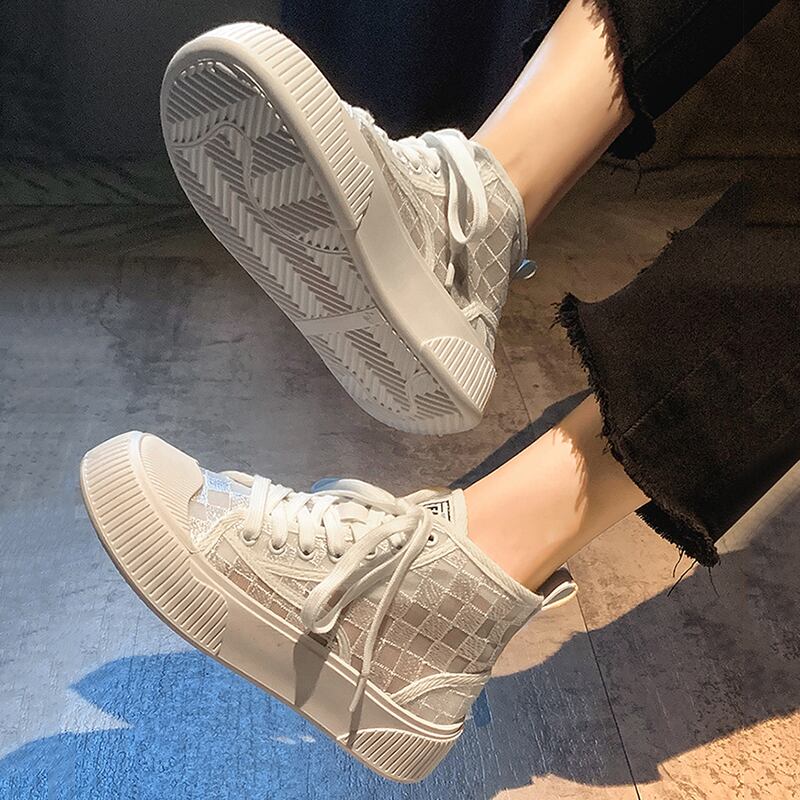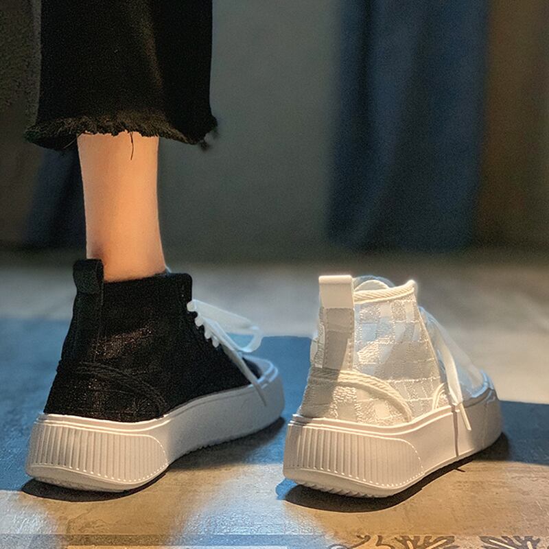 JiaBujiuサマーメッシュシューズレディース通気性2022新しい厚底滑り止めオールマッチファッション学生ハイトップスポーツカジュアルシューズ 靴 夏物 jxjxf18941796588