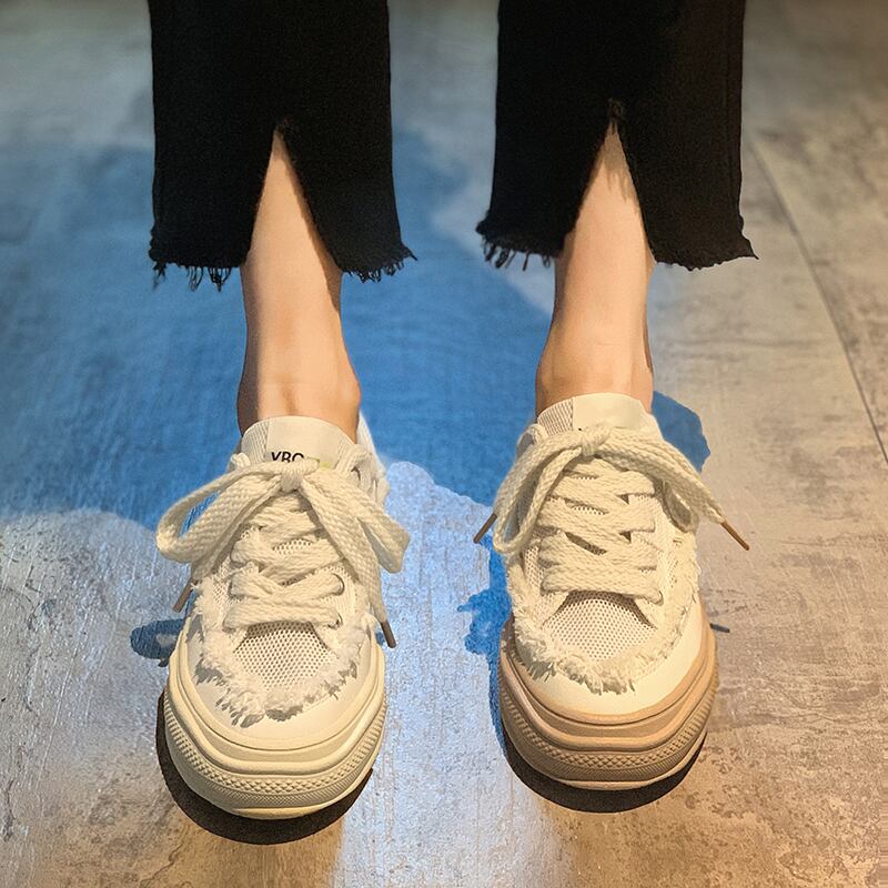 小さな白い靴女性の2022年の新しい夏の通気性のある厚い底滑り止めネット赤スーパーファッションオールマッチ学生スポーツカジュアルシューズ ホワイト レッド サマー 夏物 jxjxf67281376940