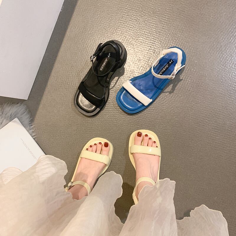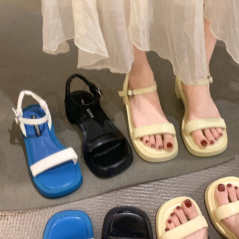 ニッチワンワードベルトサンダルレディース2022夏新しい厚いヒール滑り止めネット赤いファッションワイルドレトロローマの靴 シューズ レッド サマー 夏物 ハーネス jxjxf13287277224