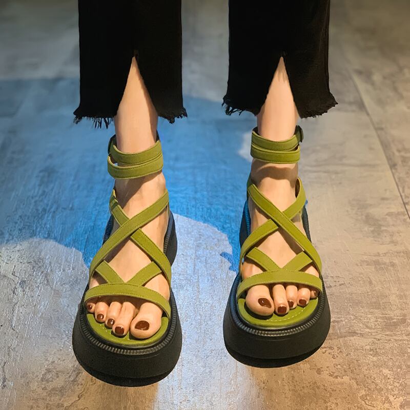 ローマンサンダルシックソール2022夏多用途スーパーファイアクロス織りレトロピッグケージシューズ 靴 サマー 夏物 jxjxf61192657544