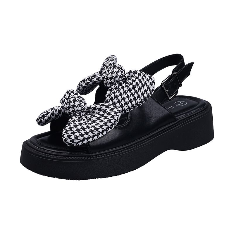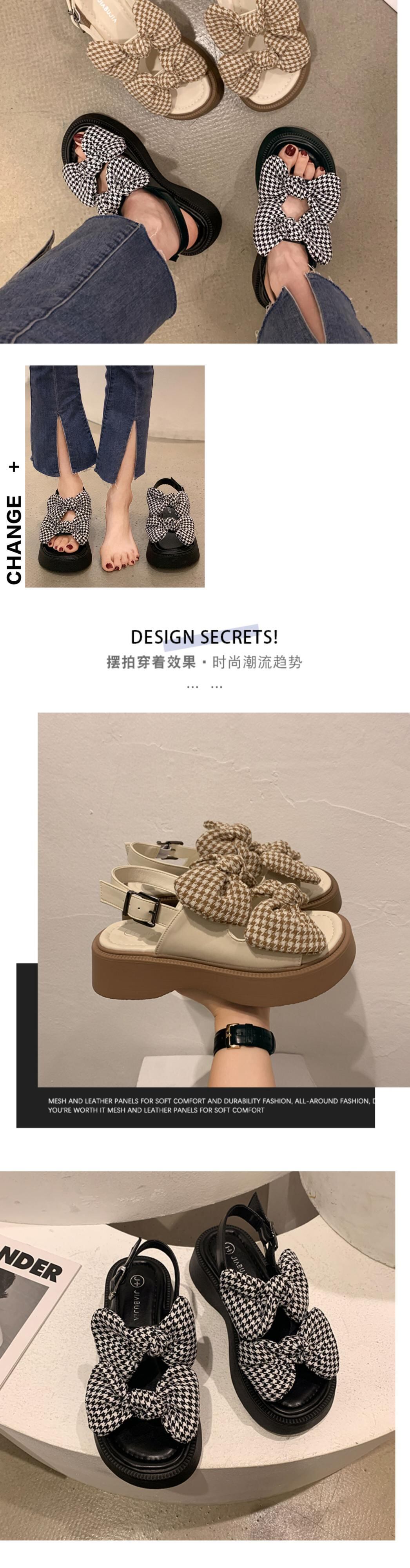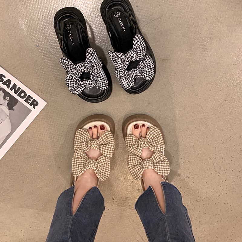 レディースサンダル2022年夏のミッドヒールオールマッチハイヒールボウスポンジケーキ厚底滑り止めビーチシューズ 靴 リボン サマー 夏物 jxjxf54645372373