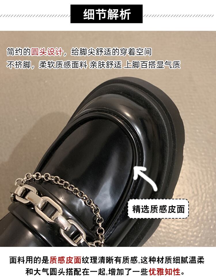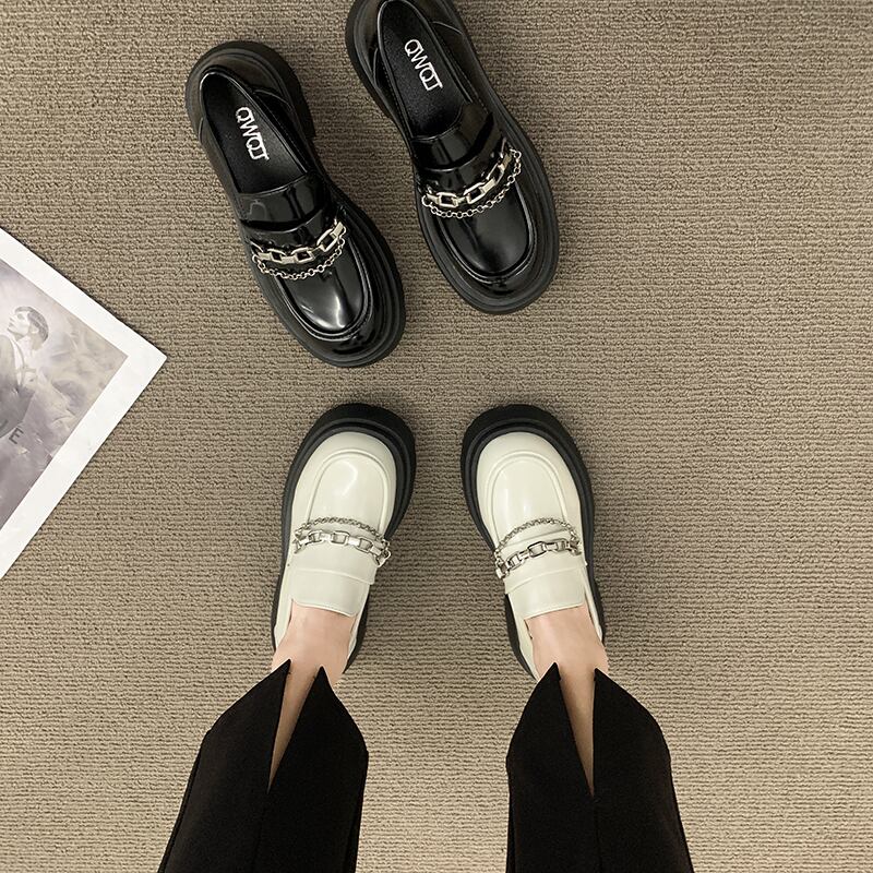 小さな革の靴女性の2022年夏の新しいチェーン厚いかかとハイヒールオールマッチ黒パテントレザーeseレトロローファー シューズ ブラック サマー 夏物 jxjxf35312007522