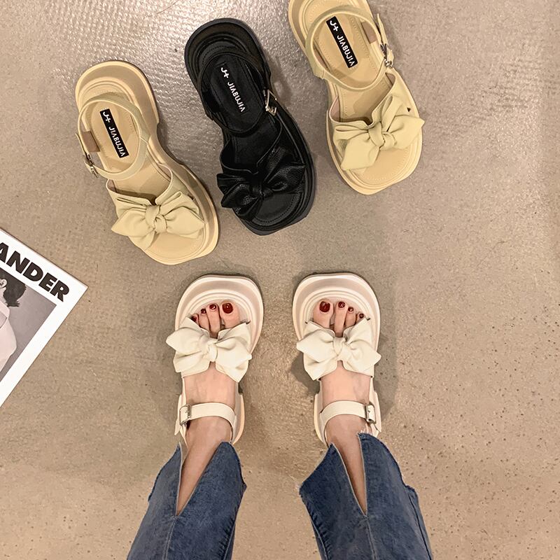 厚底サンダル女性の2022年夏の新しいファッションオールマッチレトロボウバックルストラップ厚手のヒール滑り止めビーチシューズ 靴 リボン サマー 夏物 jxjxf35266617020
