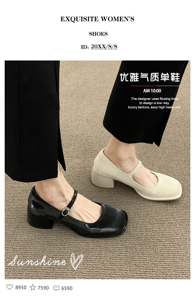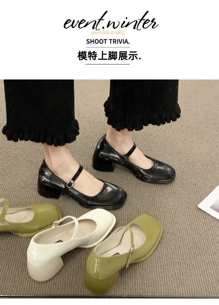 スクエアトゥシングルシューズレディース2022年夏の新しいスーパーオールマッチ浅い厚いヒール滑り止めレトロメアリージェーン小さな革の靴 サマー 夏物 レザー スクウェア jxjxf53852252035