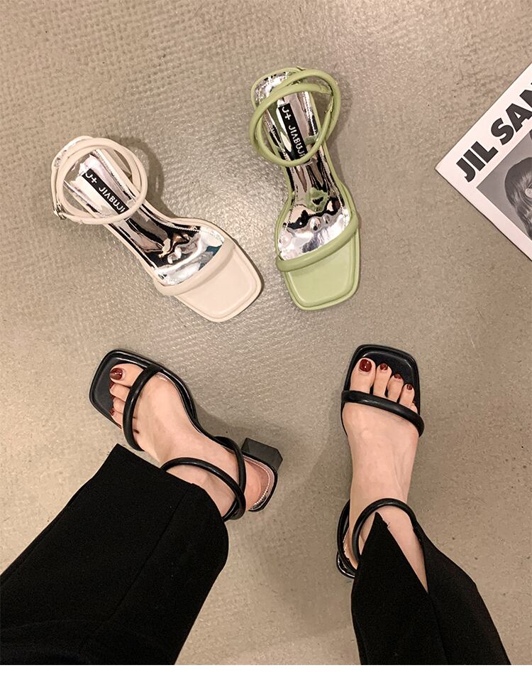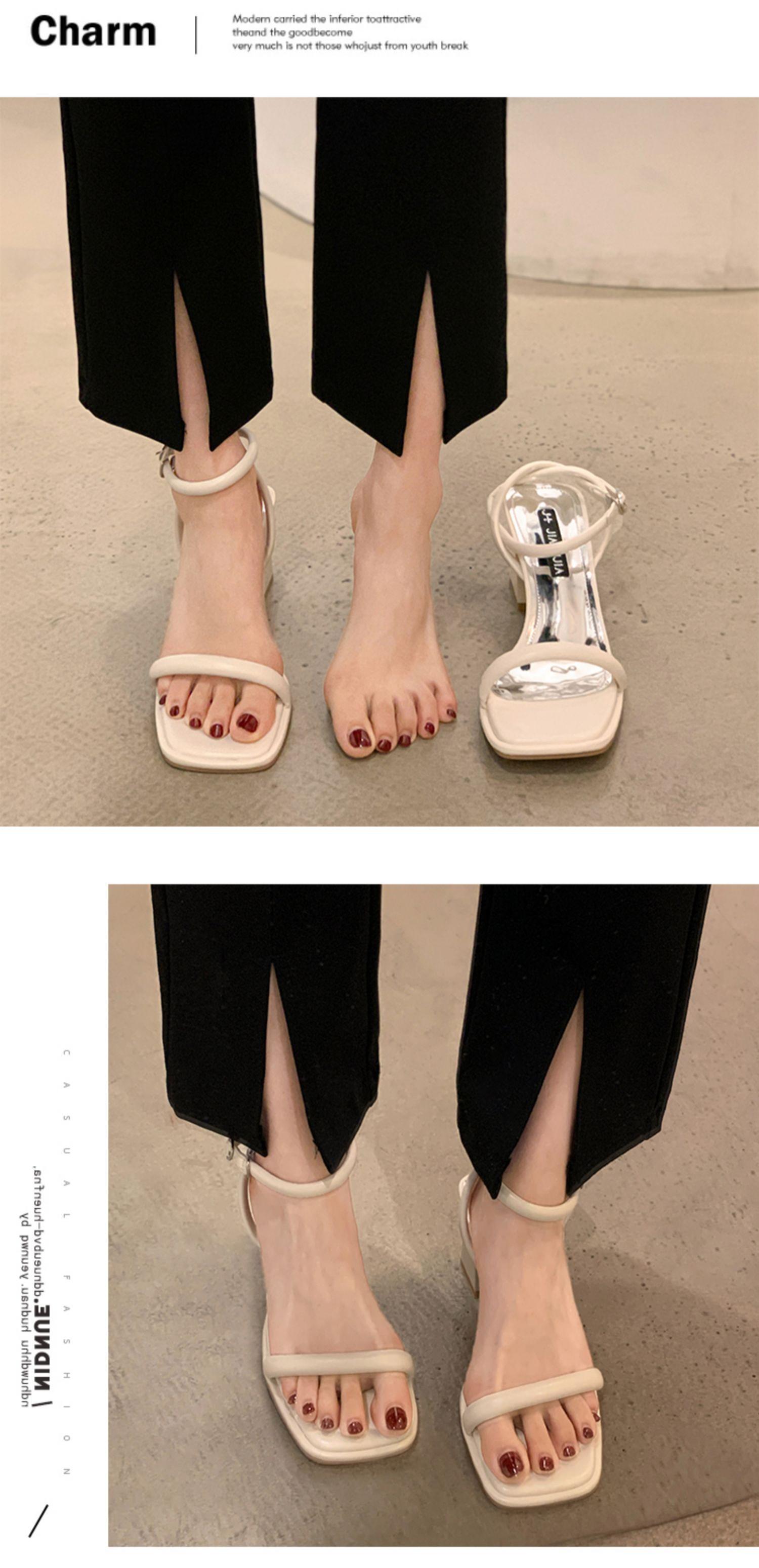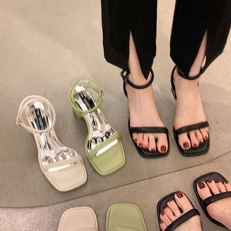 サンダル2022女性の新しい夏のファッションオールマッチ優しいレトロな厚いヒール滑り止めシンプルな一言ハイヒール 靴 シューズ サマー 夏物 jxjxf54230793331