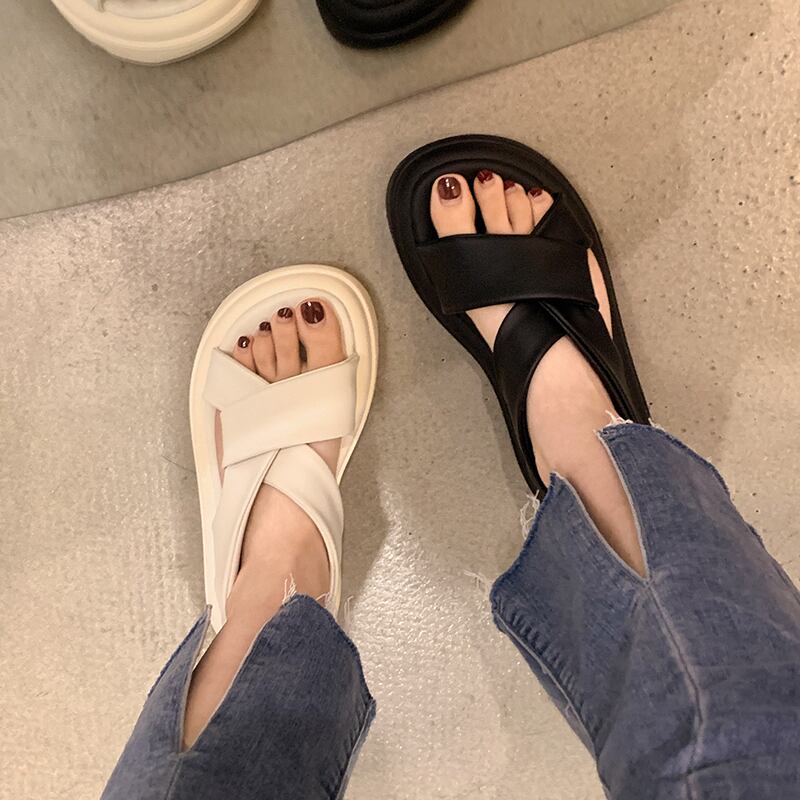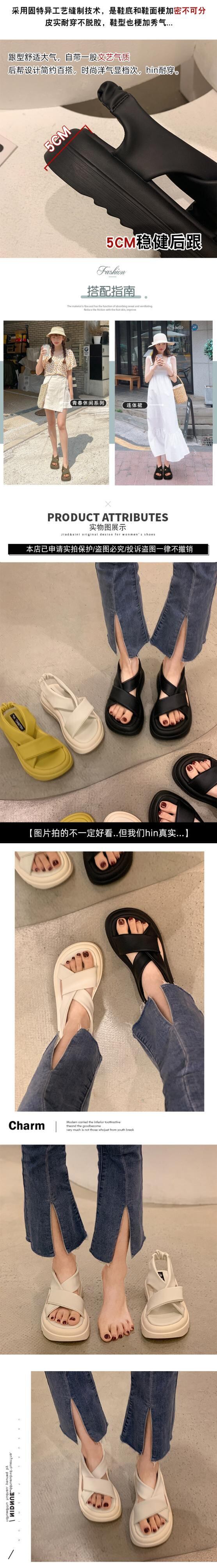 レディースサンダル2022新しいファッションカジュアルトレンドオールマッチウエスタンスタイルクロススーパーファイヤースポンジケーキ厚底ビーチシューズ 靴 jxjxf33648468916