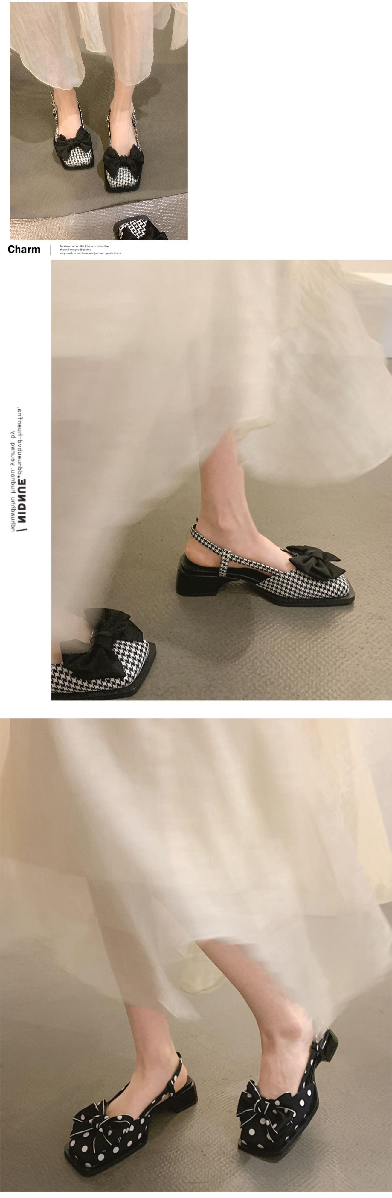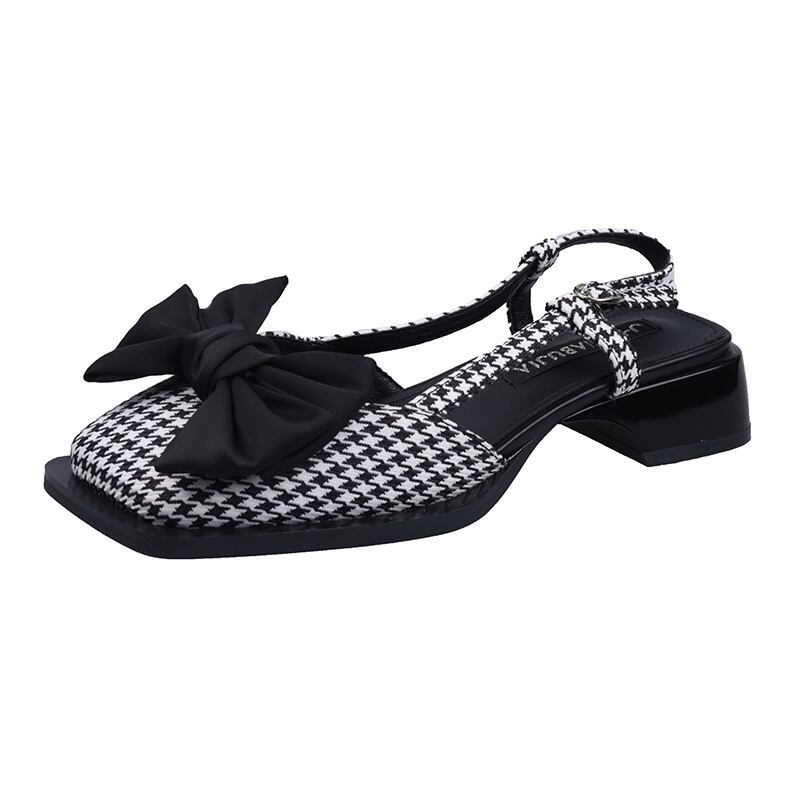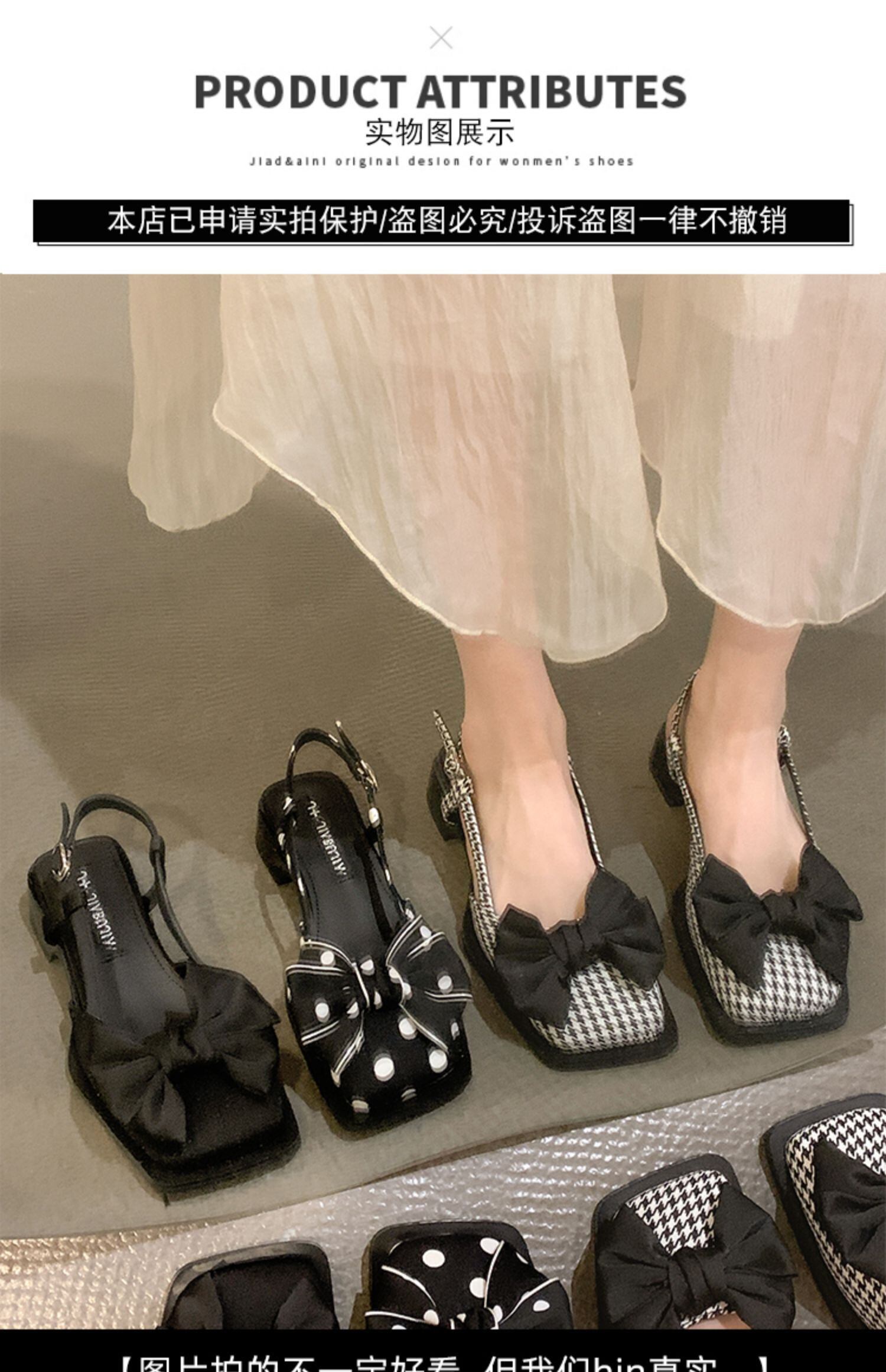 包頭サンダルレディース2022夏の新しいファッションオールマッチ千鳥格子の弓厚いヒール滑り止めメアリージェーンの靴 シューズ リボン サマー 夏物 jxjxf9880350342