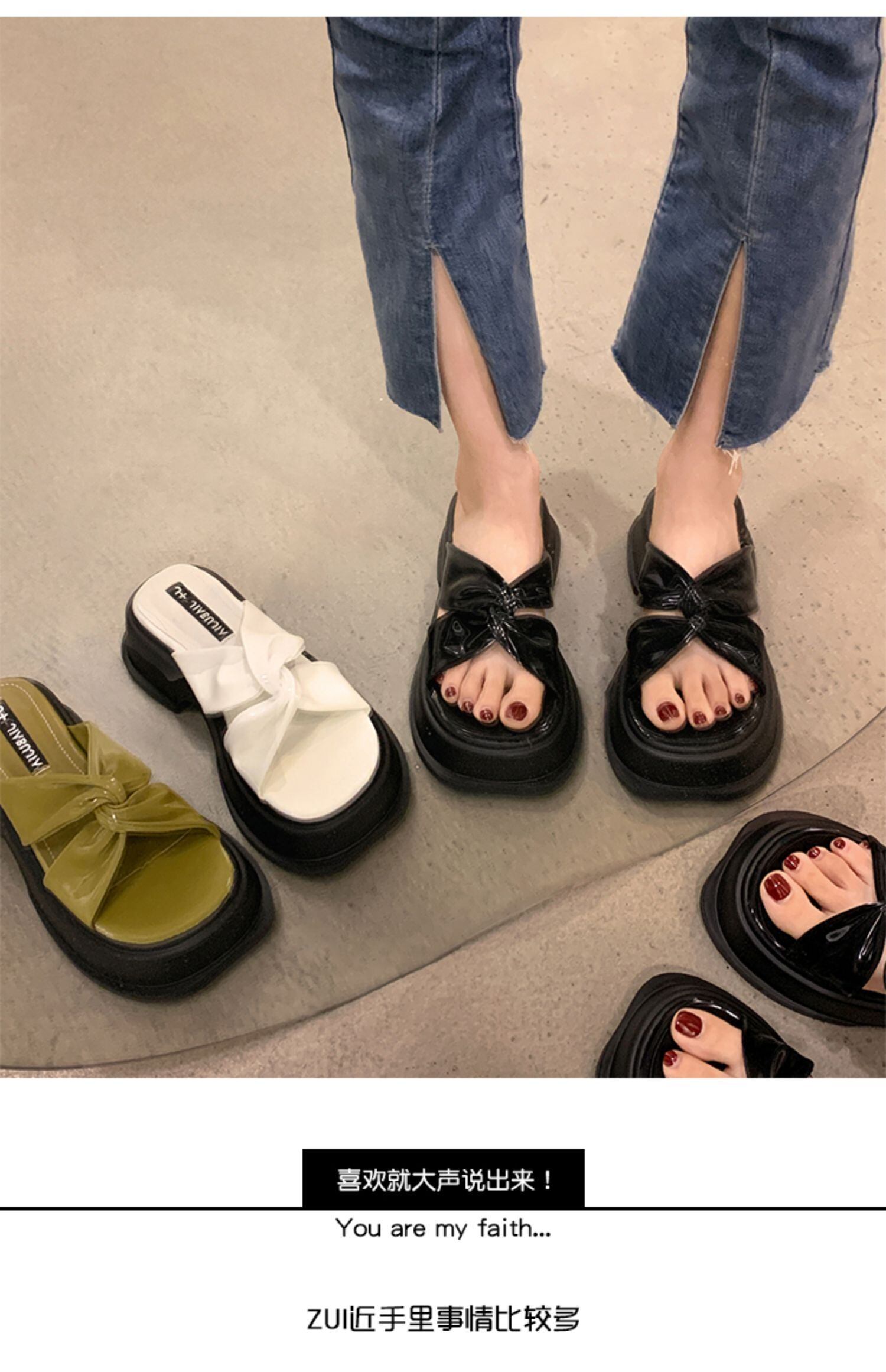 JiaBujiuレディーススリッパ2022夏の新しい厚いヒール滑り止めファッションオールマッチ小さなレトロなビーチサンダル ミュール 靴 シューズ サマー 夏物 jxjxf94211600310
