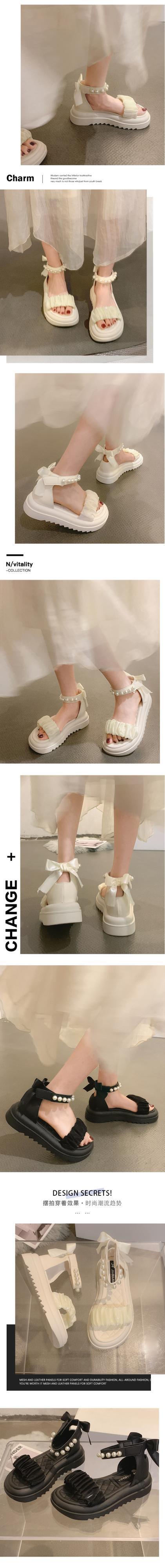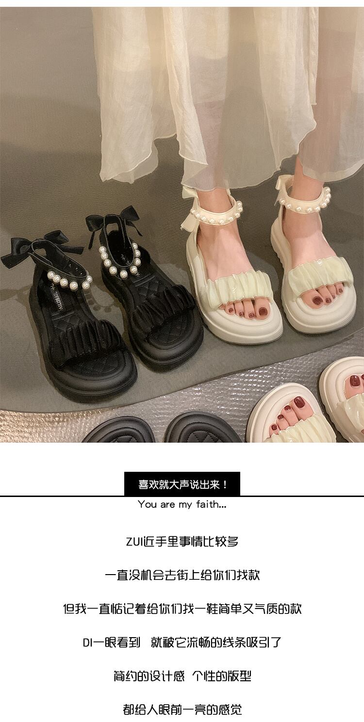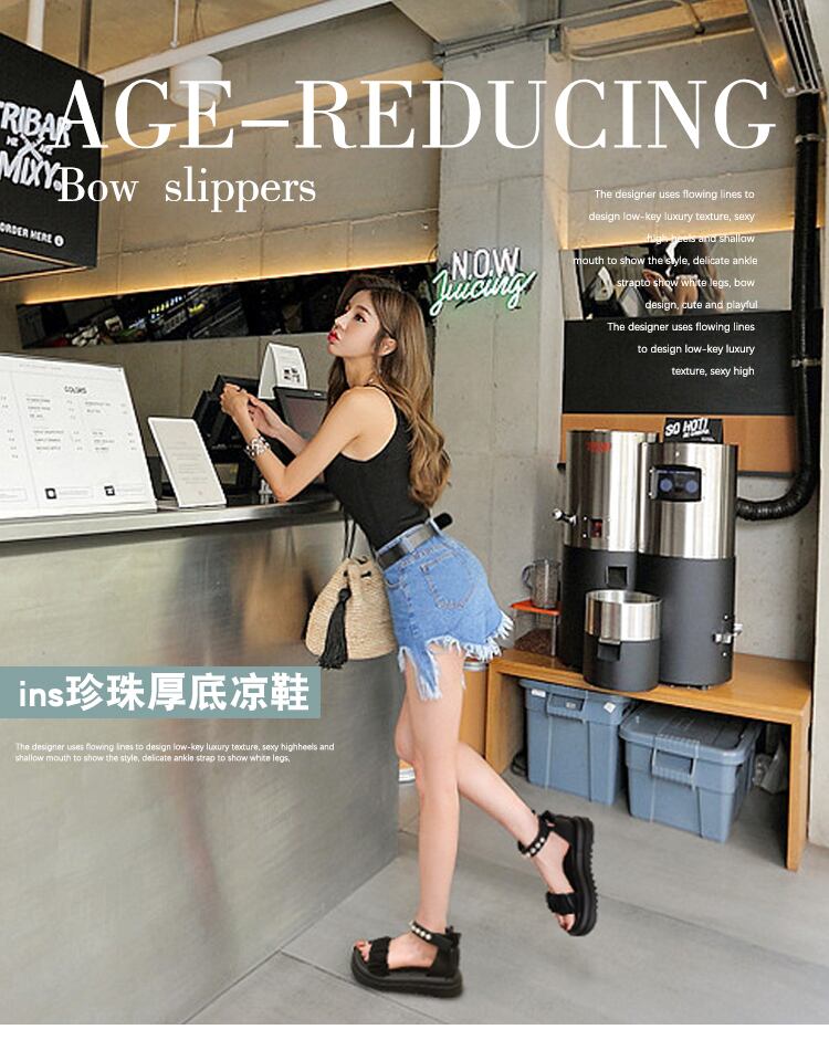 夏の婦人靴サンダル2022新しいファッションオールマッチパールベルクロスポンジケーキ厚い底滑り止めローマの靴の潮 シューズ サマー 夏物 真珠 jxjxf7942703396