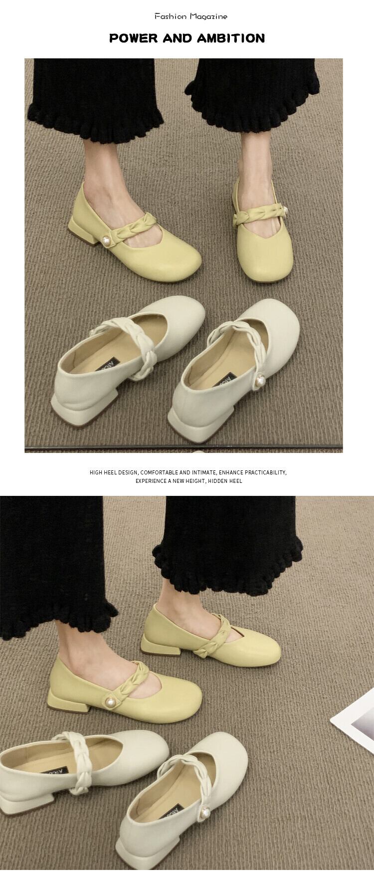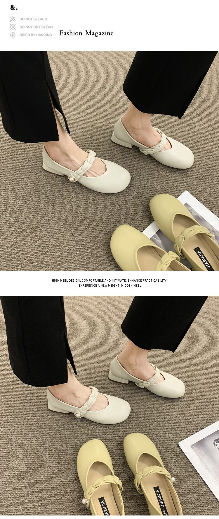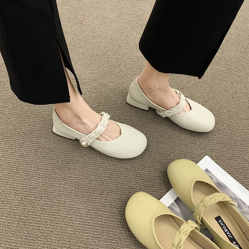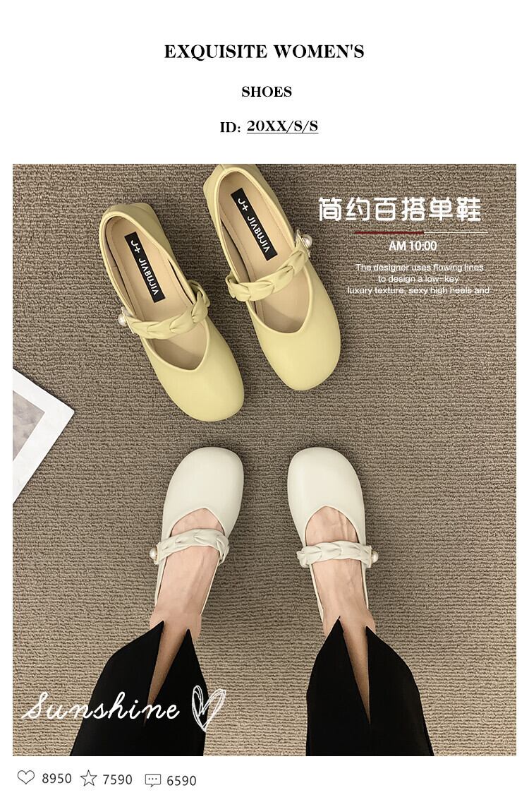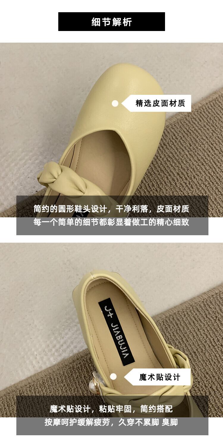 JiaBufuローヒールシューズ2022年夏の新作オールマッチパールベルクロ浅口優しいレトロレザーシューズ 靴 サマー 夏物 真珠 jxjxf98030795035