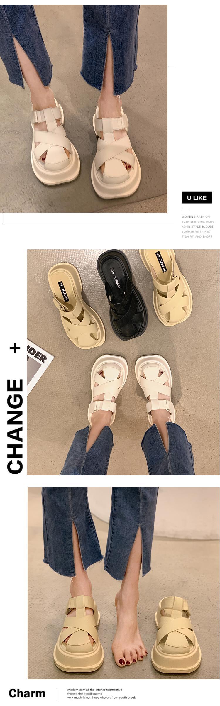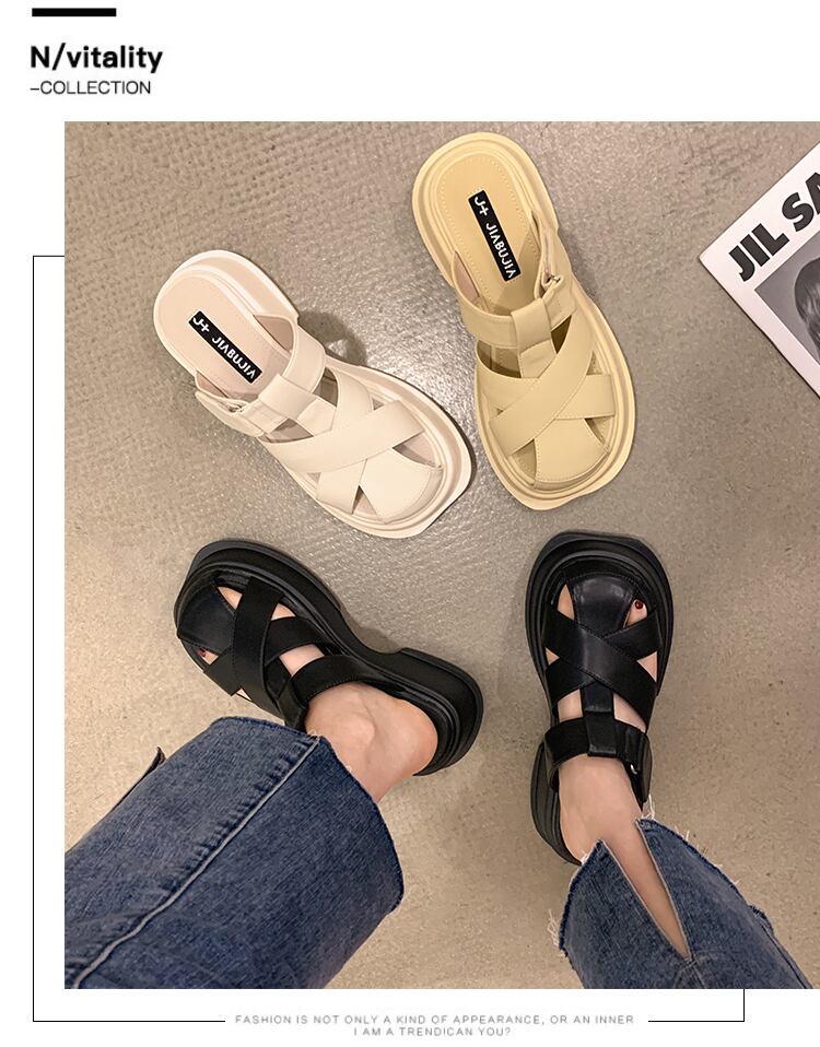 包頭ハーフスリッパ女子2022年夏新作ファッションオールマッチ学生ベルクロ織り厚底アウターサンダルとスリッパタイド ミュール 靴 シューズ サマー 夏物 jxjxf58418242841