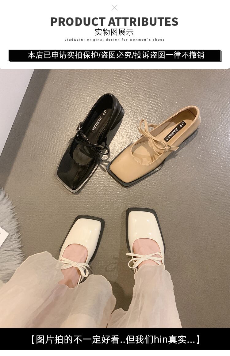 JiaBujiaメリージェーンシューズ女性の2022年夏の新しいファッションオールマッチボウローヒール滑り止めスクエアトゥスモールレザーシューズ 靴 リボン サマー 夏物 スクウェア jxjxf60937077026