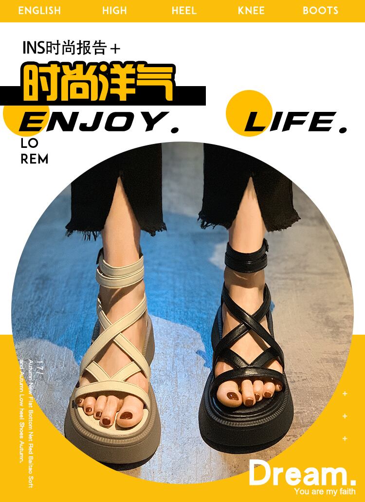 レディースサンダル2022年夏の新作ファッションオールマッチ学生ネットレッドベルトバックル厚底スーパーファイアローマの靴潮 シューズ サマー 夏物 ハーネス jxjxf34622919530