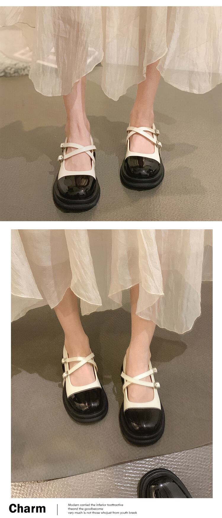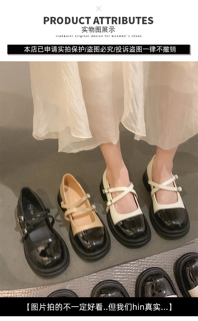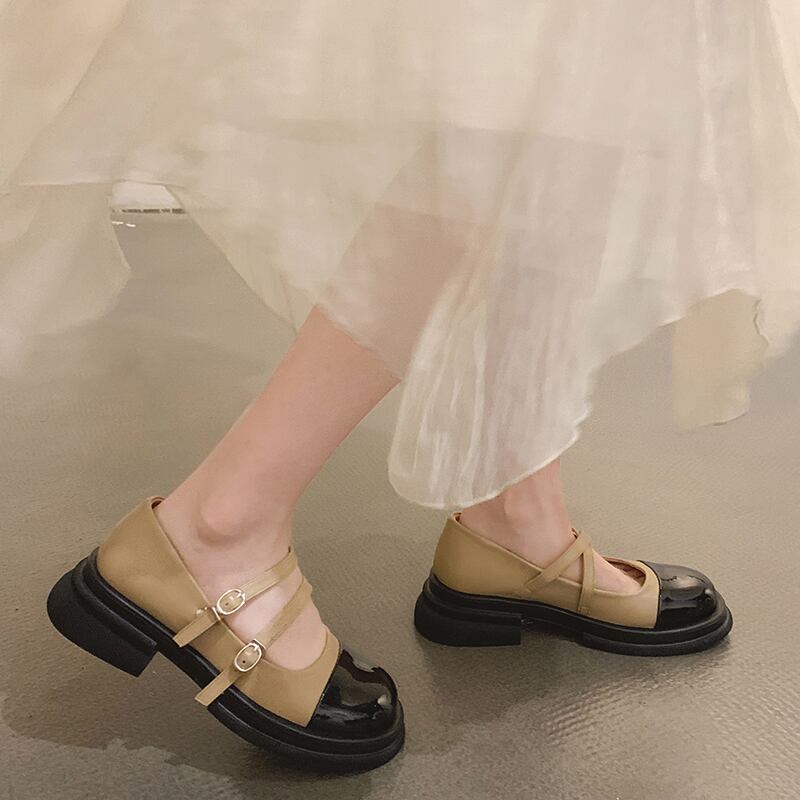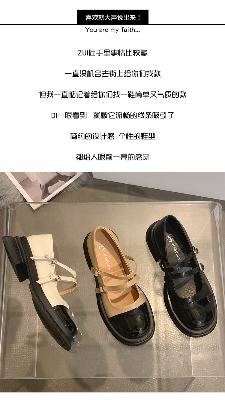 レトロなシングルシューズの女性の2022年夏の新しいオールマッチラウンドヘッド浅い口厚いヒール豚のウエストメアリージェーン小さな革の靴夏 サマー 夏物 レザー jxjxf86345554385