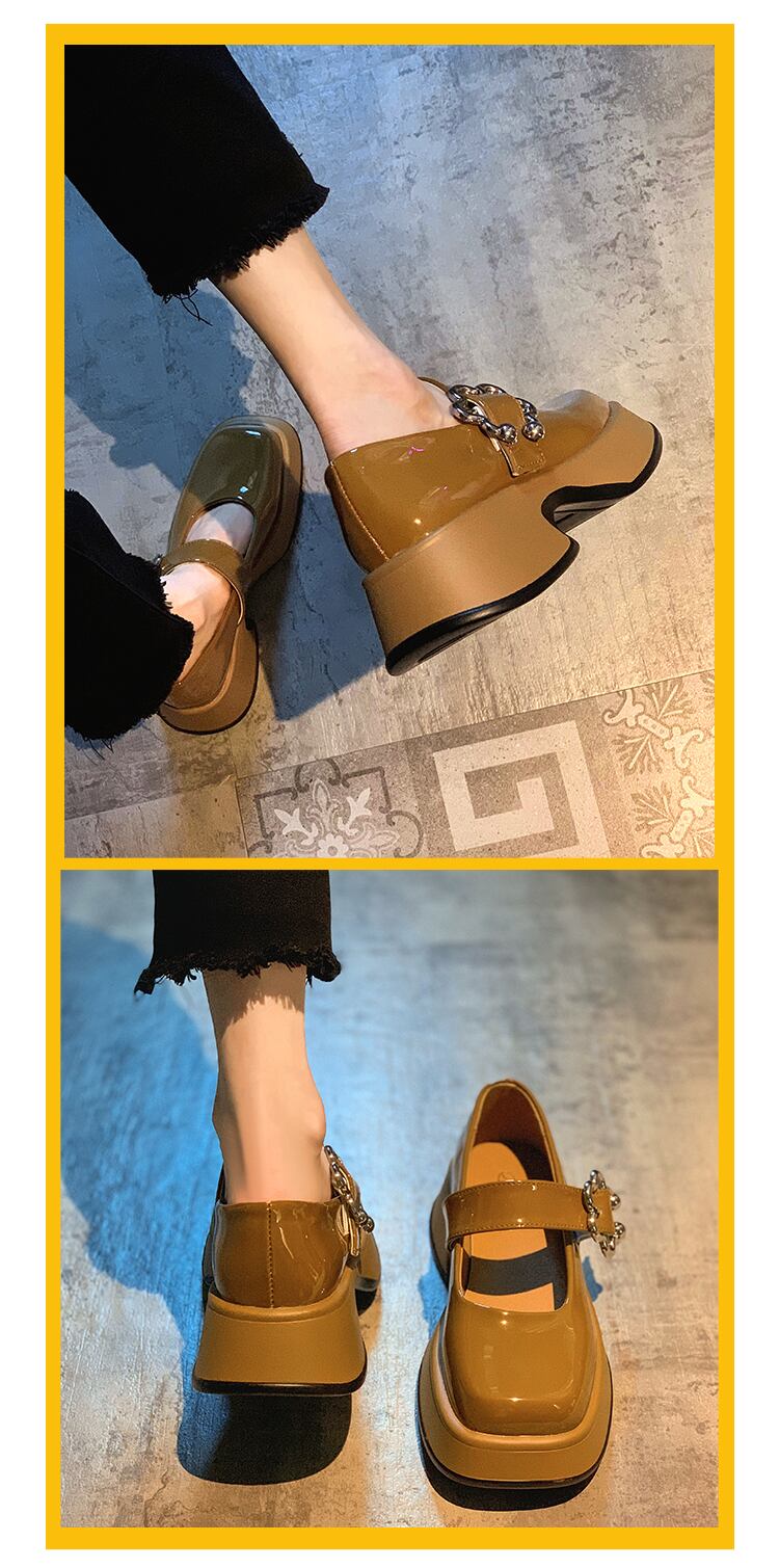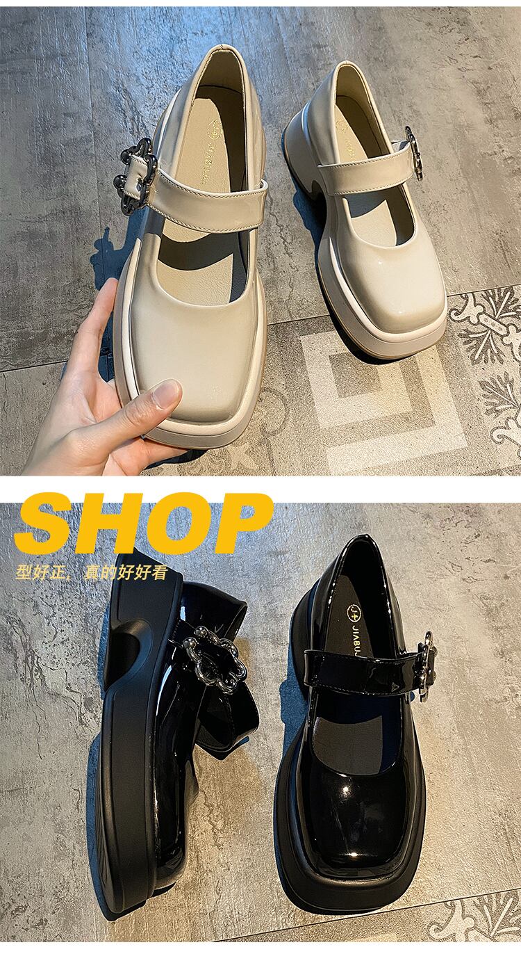 メリージェーン靴女性の2022年夏の新しいファッションレトロワイルドスクエアヘッド浅い口厚いヒール滑り止め小さな革の靴潮 シューズ サマー 夏物 レザー スクウェア jxjxf75944893388