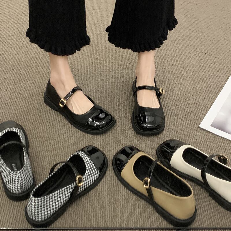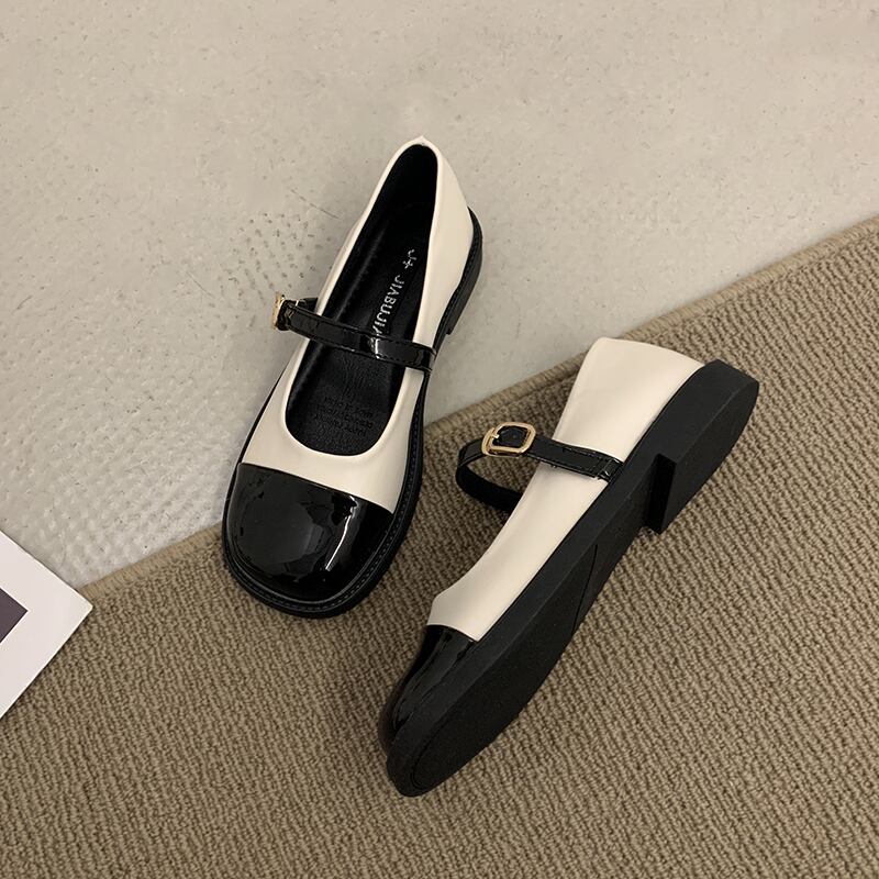 Jia BujiaMaryJaneシングルシューズ2022年夏の新しいオールマッチレトロカラーマッチングesejkフラットスモールレザーシューズ 靴 サマー 夏物 jxjxf7176184570