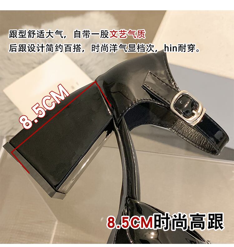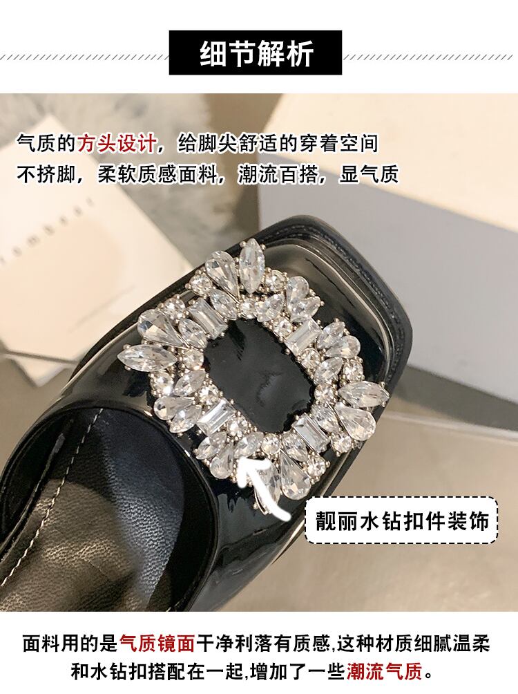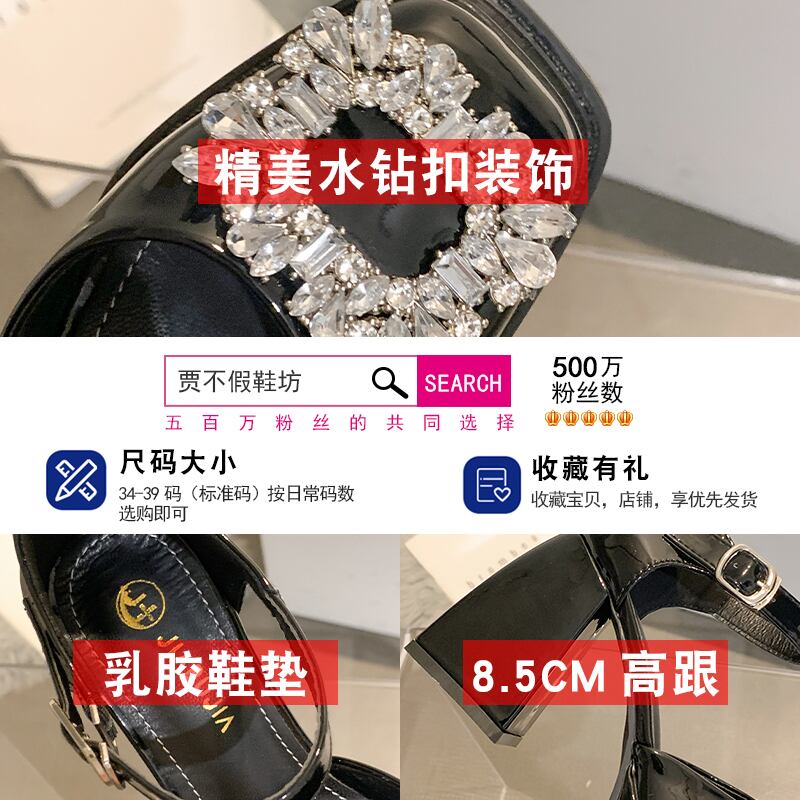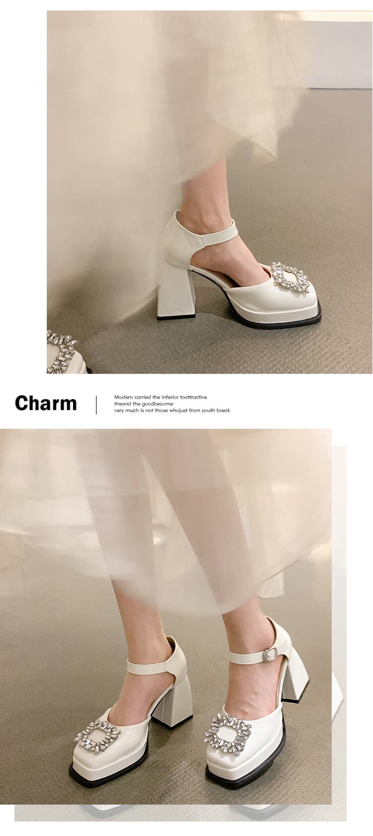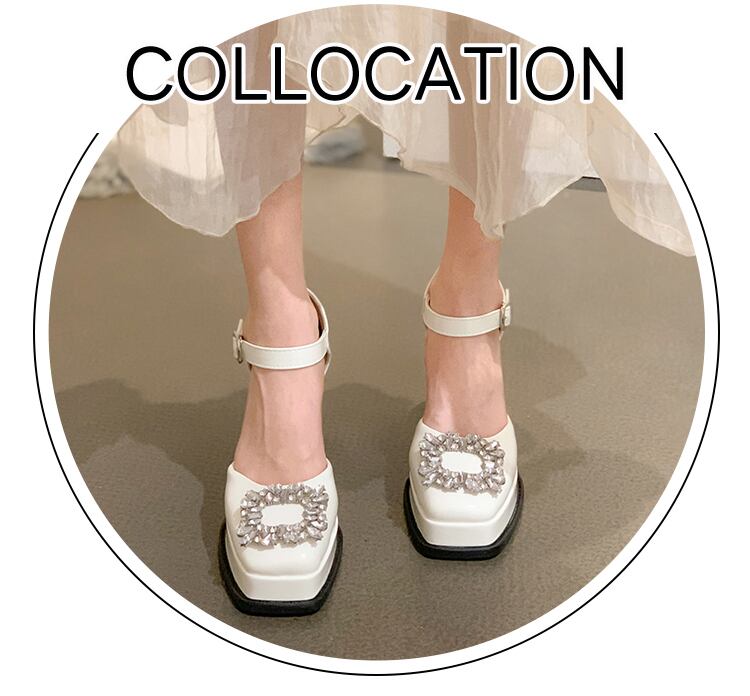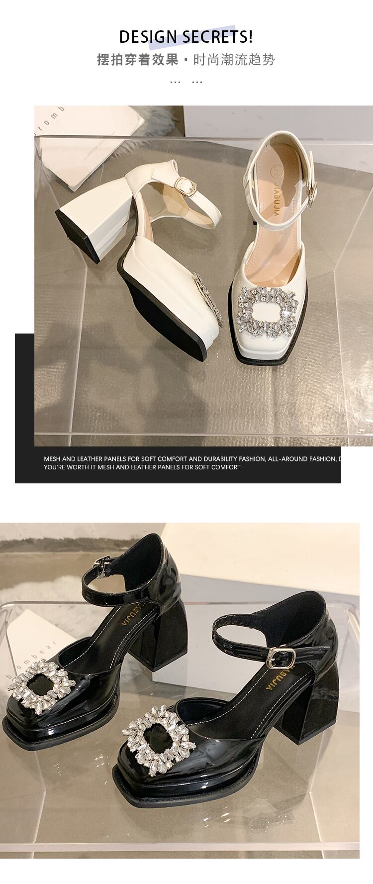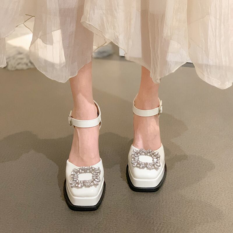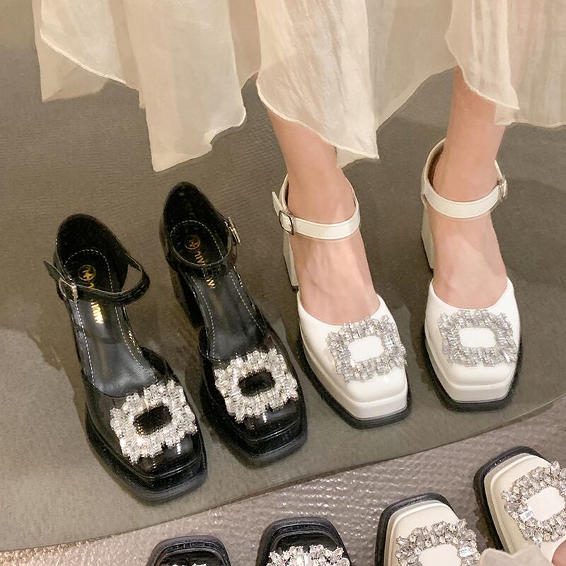 メリージェーンの靴の女性の2022年夏の新しいオールマッチスクエアヘッドレトロラインストーン厚いヒール滑り止めの小さな革の靴の潮 シューズ サマー 夏物 レザー スクウェア jxjxf87713830504