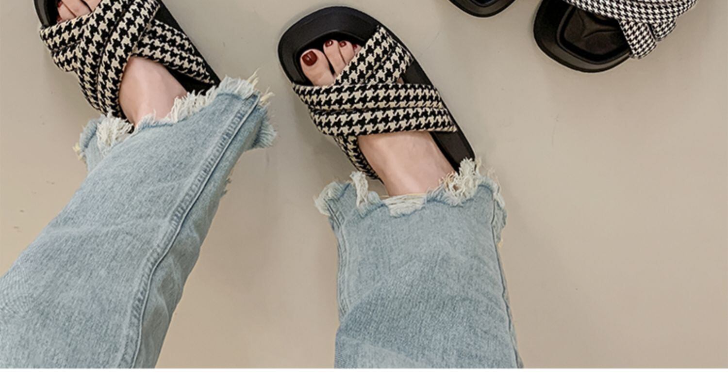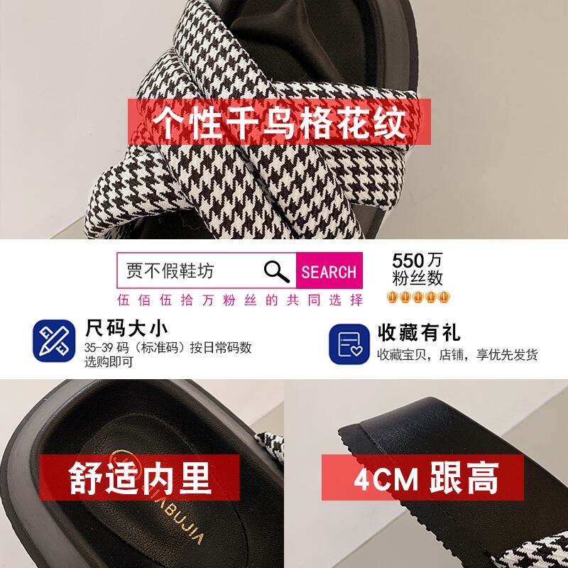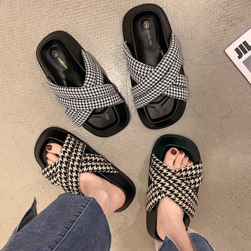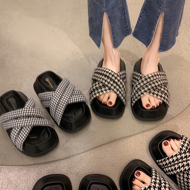 アウターウェアスリッパ夏の女性の2022年の新しいファッションオールマッチ千鳥格子スポンジケーキ厚い底滑り止めカジュアルサンダルとスリッパ ミュール 靴 シューズ サマー 夏物 jxjxf17733006097