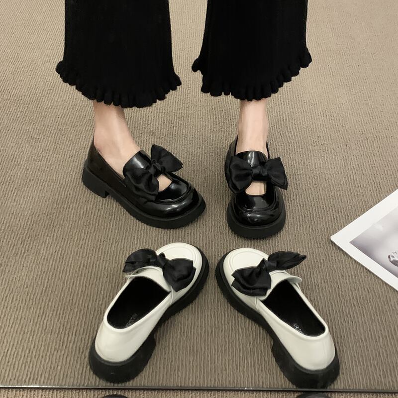 小さな革の靴女性の2022年夏の新しい弓の厚いかかと滑り止めネット赤いファッションオールマッチ妖精スタイルのレトロな靴 シューズ レッド リボン ヒール サマー 夏物 レザー jxjxf69869341124