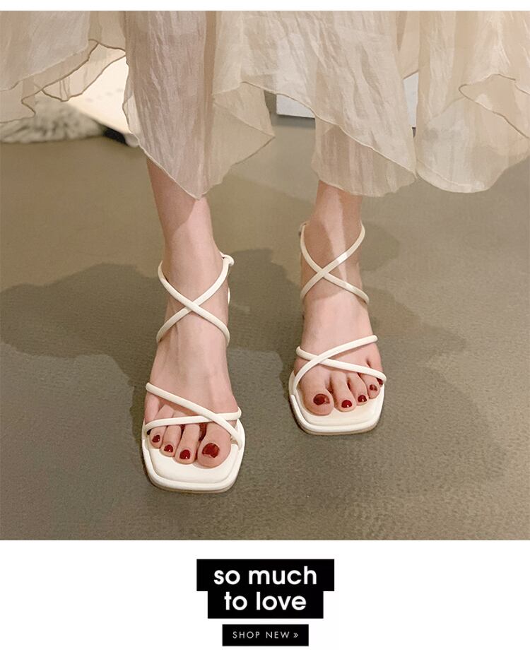 ローマのサンダルレディース2022年夏の新しいクロスシックヒールノンスリップネットレッドオールマッチフェアリースタイルレトロハイヒール 靴 シューズ サマー 夏物 jxjxf8016435942