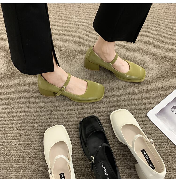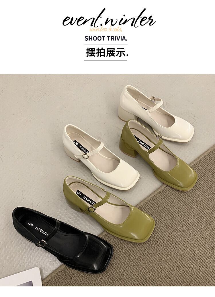 メリージェーンシューズ女性の2022年夏の新しいファッションオールマッチ優しいレトロマッチングスカート厚いヒール滑り止めスクエアトゥスモールレザーシューズ 靴 サマー 夏物 スクウェア jxjxf16644924000