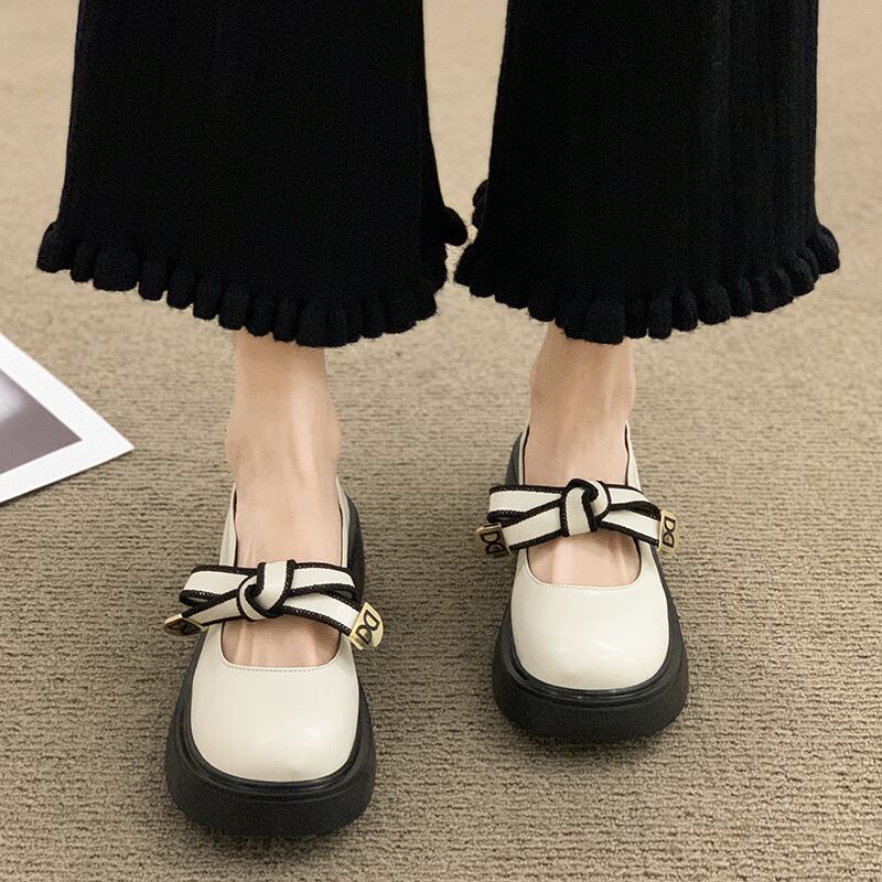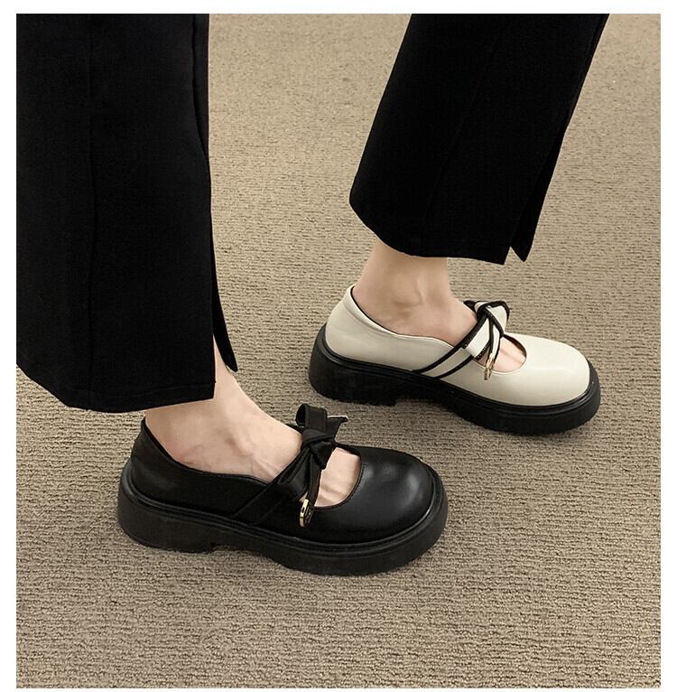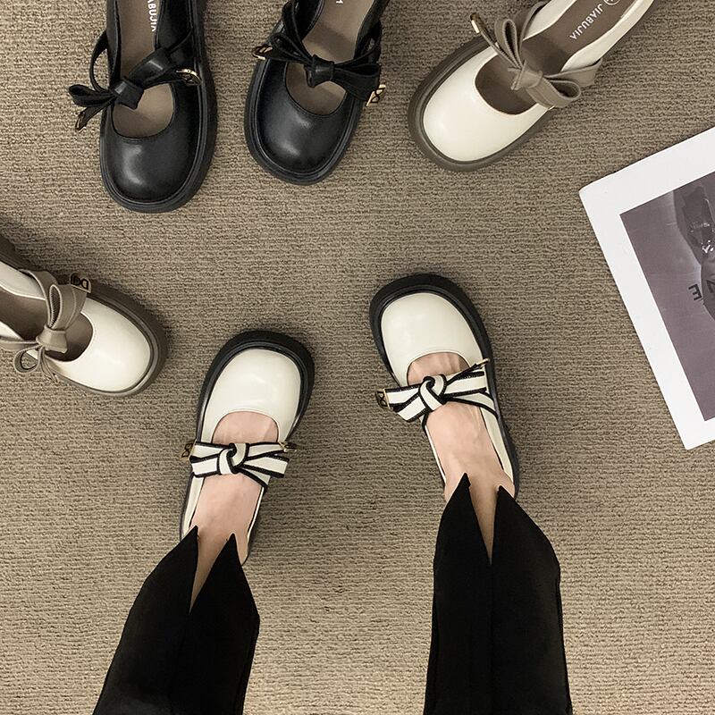 小さな革の靴の女性の2022年夏の新しい弓の厚いかかと滑り止めネット赤のファッションオールマッチeseレトロシングルシューズ レッド リボン ヒール サマー 夏物 レザー jxjxf13802777362