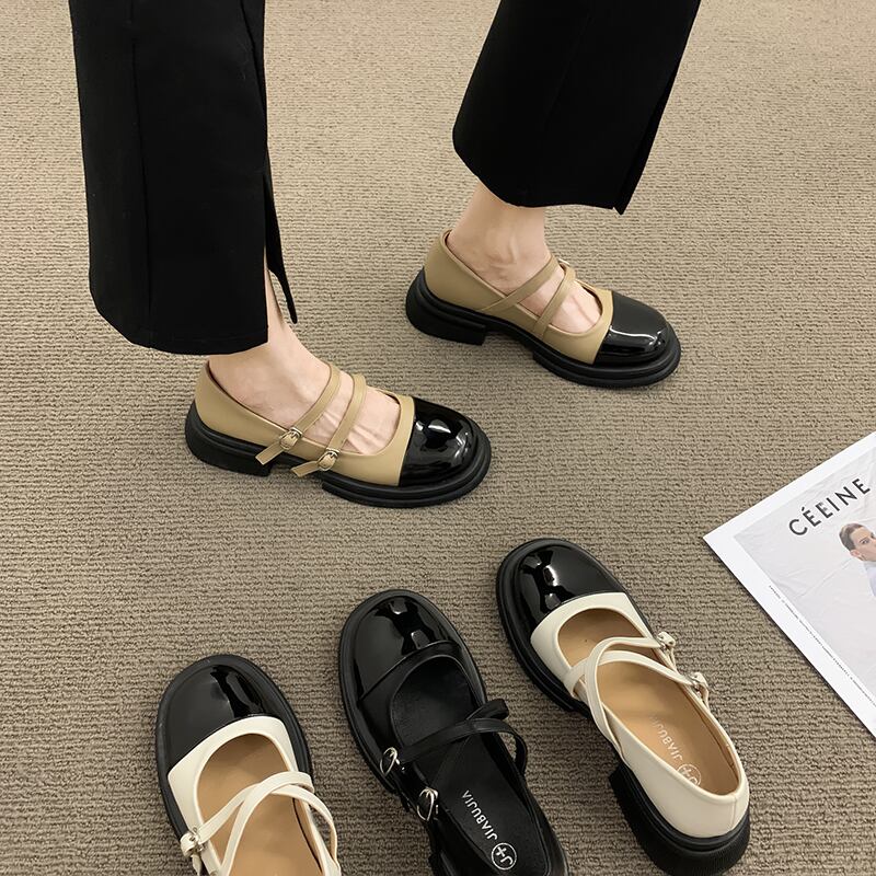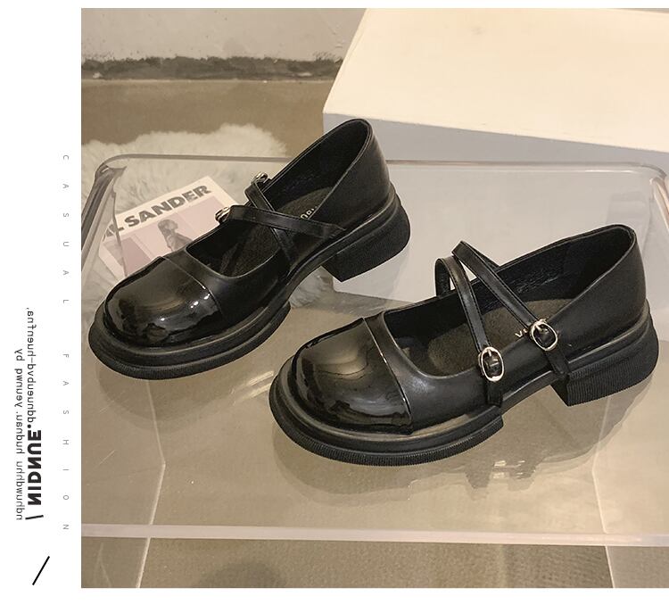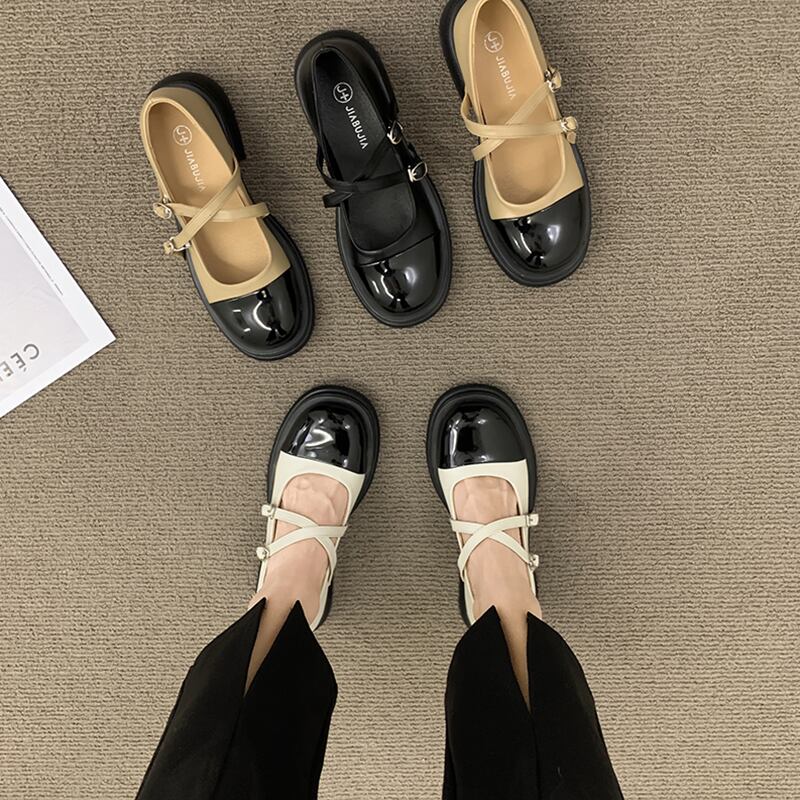 メリージェーンの靴の女性の2022年夏の新しいファッションオールマッチラウンドヘッド浅い口ミドルヒール滑り止めレトロな小さな革の靴の潮 シューズ サマー 夏物 レザー jxjxf12931186575