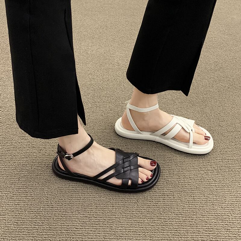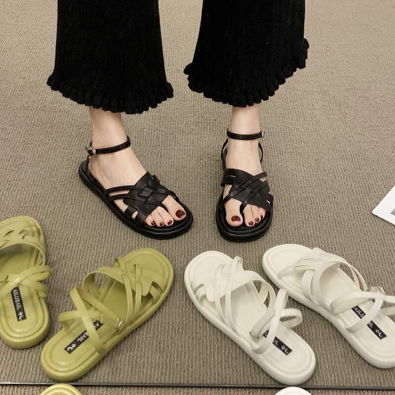 ローマのサンダル女性の2022年夏の新しいクリップつま先織り平底滑り止めネット赤いファッションワイルドレトロビーチシューズ 靴 レッド サマー 夏物 jxjxf4949980917