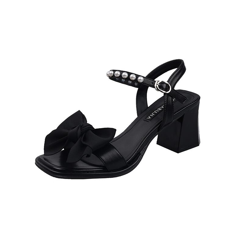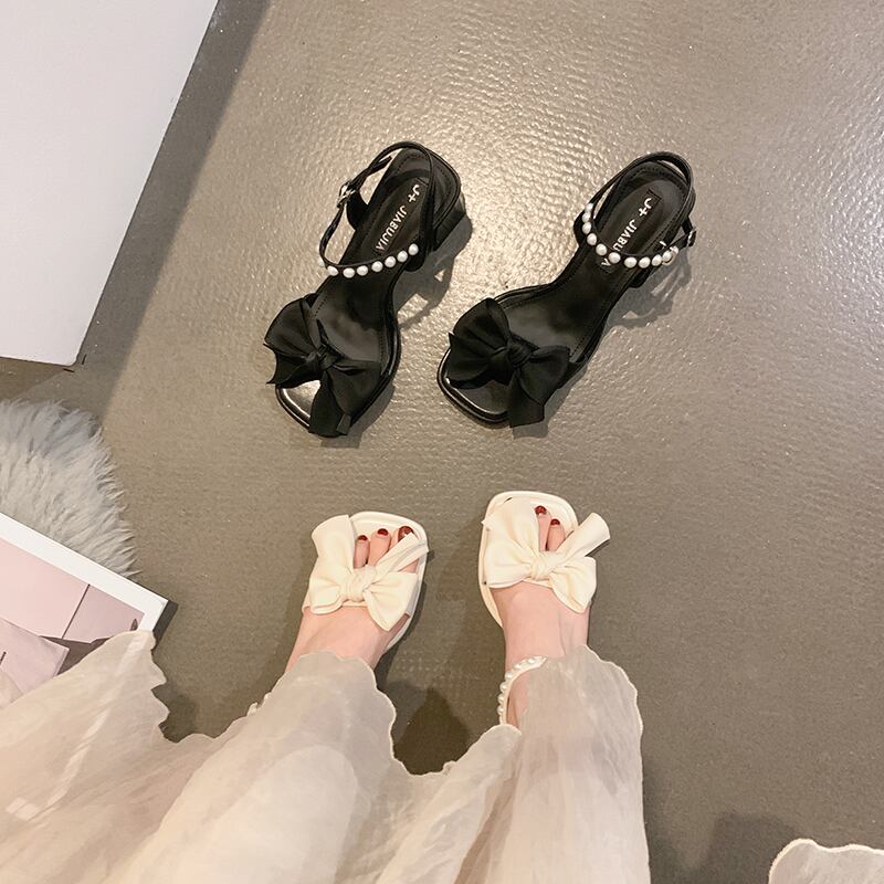 ニッチワンワードベルトサンダルレディース2022夏ニューパールボウシックヒールファッションオールマッチフレンチハイヒール リボン 靴 シューズ サマー 夏物 ハーネス 真珠 jxjxf77750118646