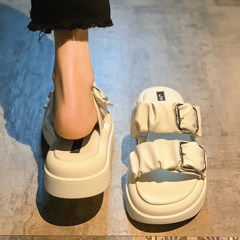 レディーススリッパサマーウェア2022新しいファッションオールマッチレトロベルトバックルスポンジケーキ厚底滑り止めサンダル ミュール 靴 シューズ 夏物 ハーネス jxjxf14511759238