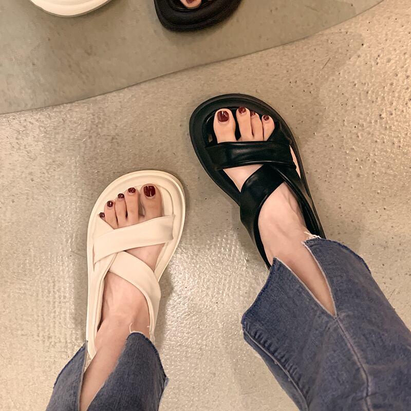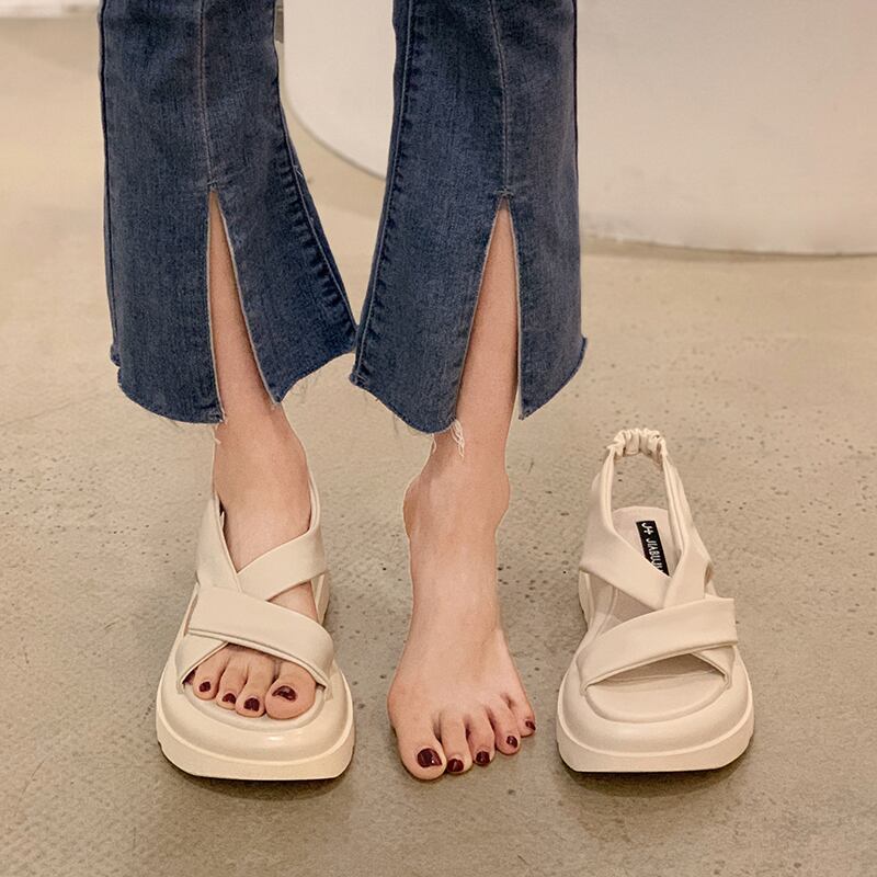 厚底サンダルレディース2022年新作ファッションカジュアルオールマッチネットレッド人気クロスフライストリートスポンジケーキビーチシューズ夏 靴 サマー 夏物 jxjxf71011757788