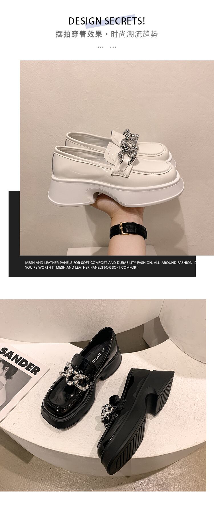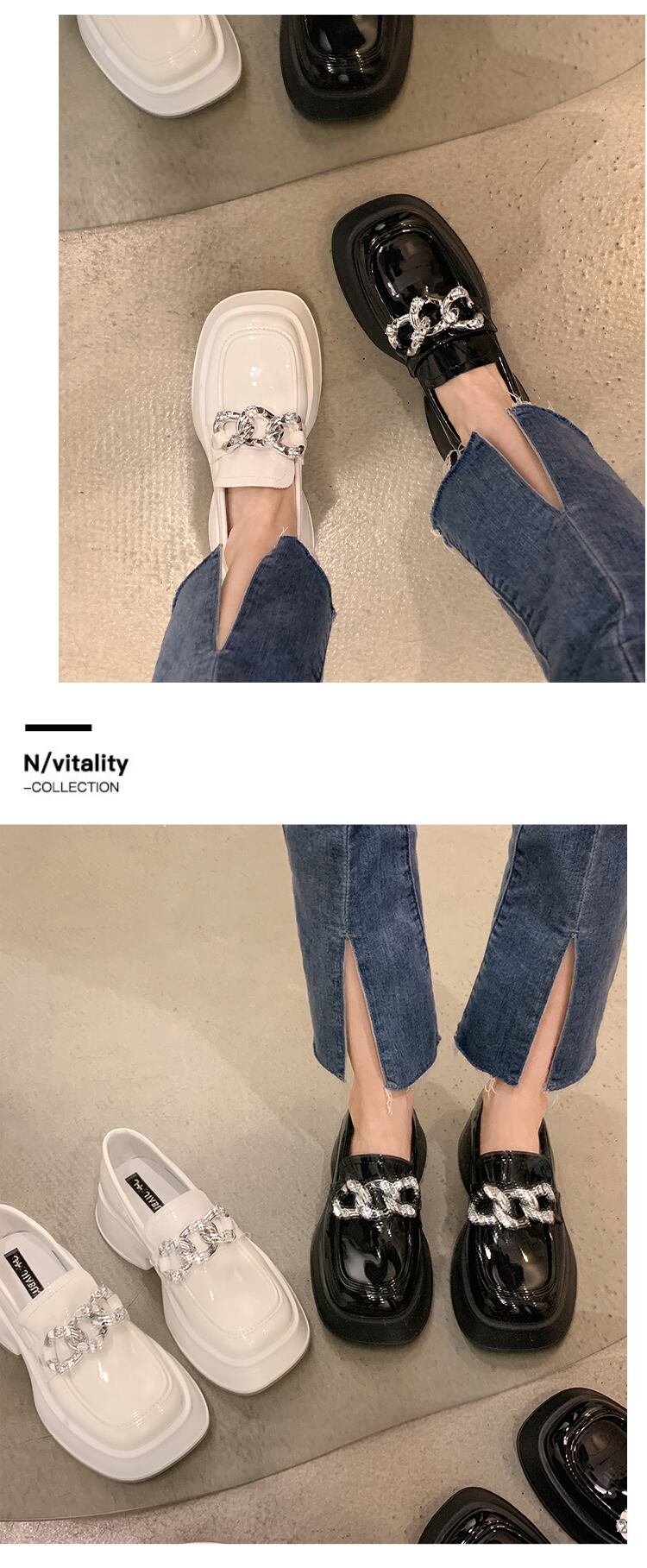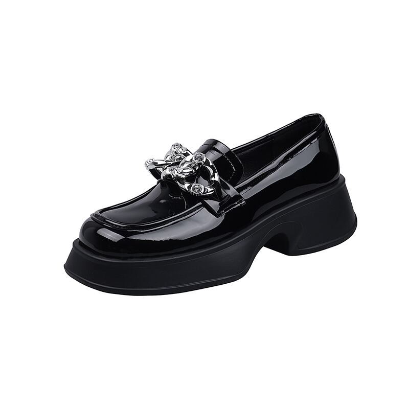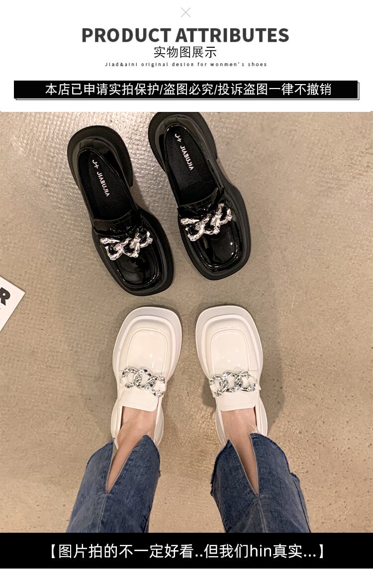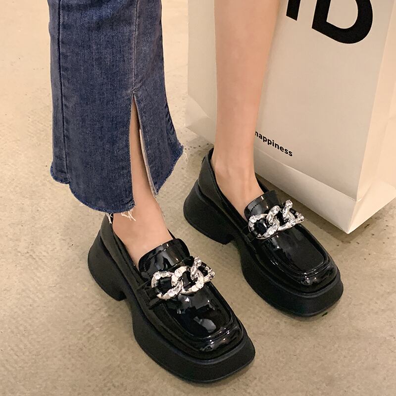 ローファー女性の2022年夏の新しいファッションオールマッチレトロラインストーンチェーン厚いヒール滑り止めスクエアトゥスモールレザーシューズ 靴 サマー 夏物 スクウェア jxjxf21127604322