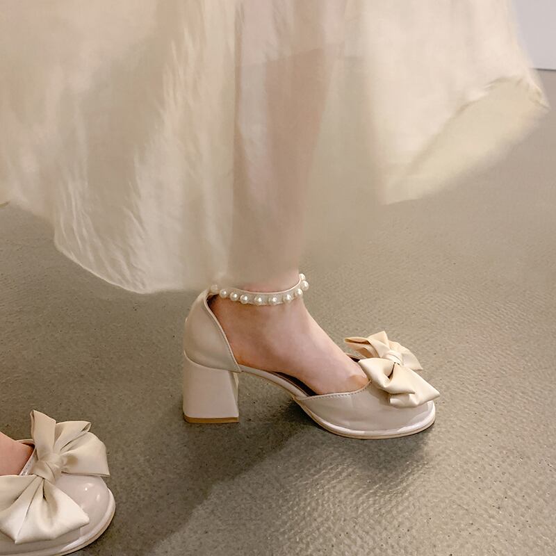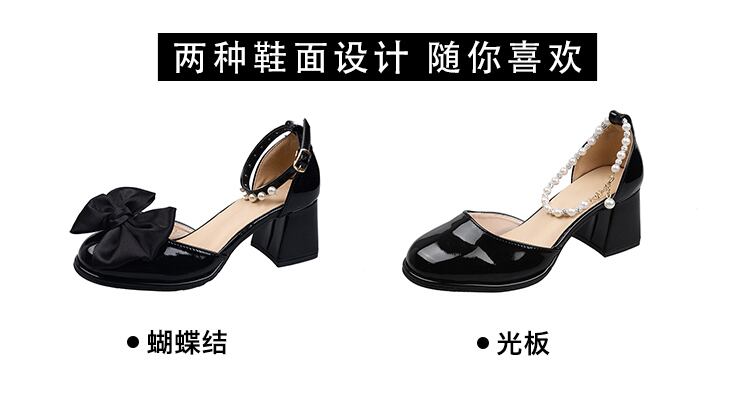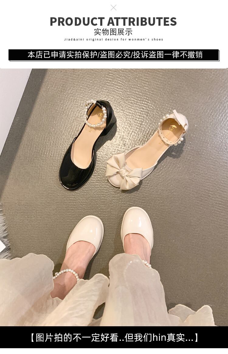 メリージェーンの靴女性の2022年夏の新しいファッションオールマッチレトロボウラウンドヘッド厚いヒール滑り止めの小さな革の靴 シューズ リボン サマー 夏物 レザー jxjxf79612886749