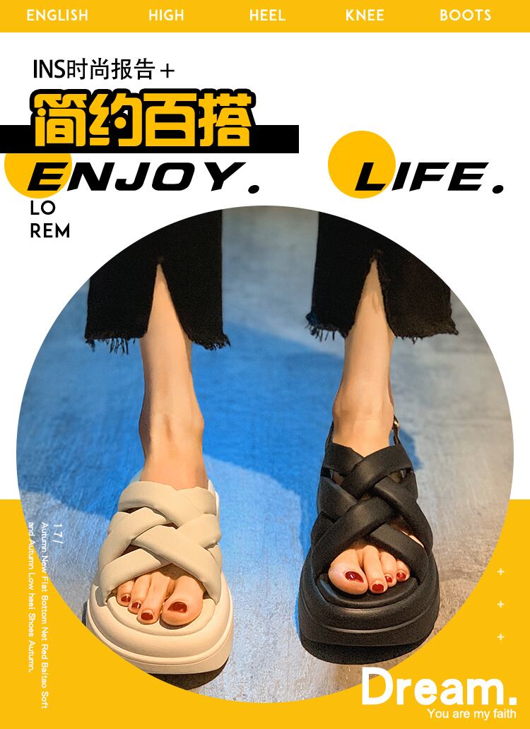 サンダルレディースサマーモデル2022新しいファッションオールマッチ小さな織りマフィン厚い底滑り止めカジュアルビーチシューズ 靴 夏物 jxjxf13844283174