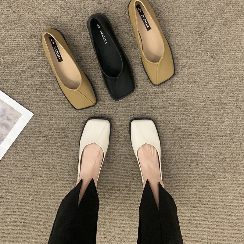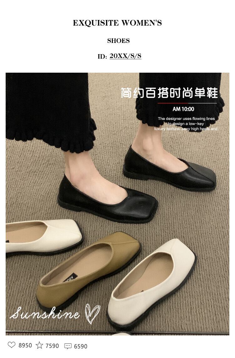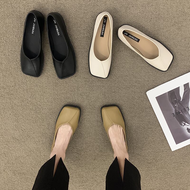 靴2022年夏新しいシングルシューズファッションオールマッチスクエアヘッド浅い口フラットボトム滑り止めレトロスクープシューズ潮 サマー 夏物 スクウェア jxjxf97840490171