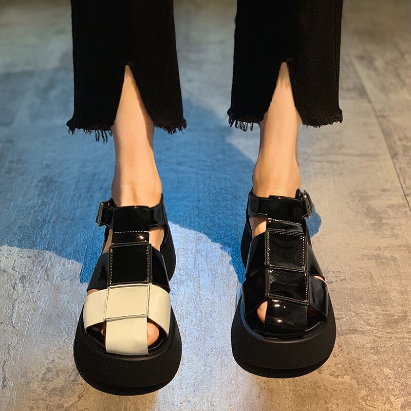 包頭サンダルレディース2022年夏の新しい厚いかかと滑り止めネット赤スーパーファッションレトロローマの靴instide シューズ レッド ヒール サマー 夏物 jxjxf62554049265