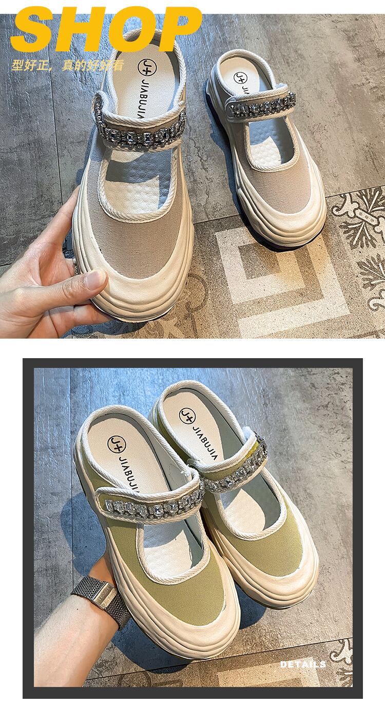 包頭ドラッグアウターウェアレディース2022年夏の新しいキャンバスラインストーン厚底滑り止めファッションオールマッチサンダルとスリッパ ミュール 靴 シューズ サマー 夏物 jxjxf33263084269