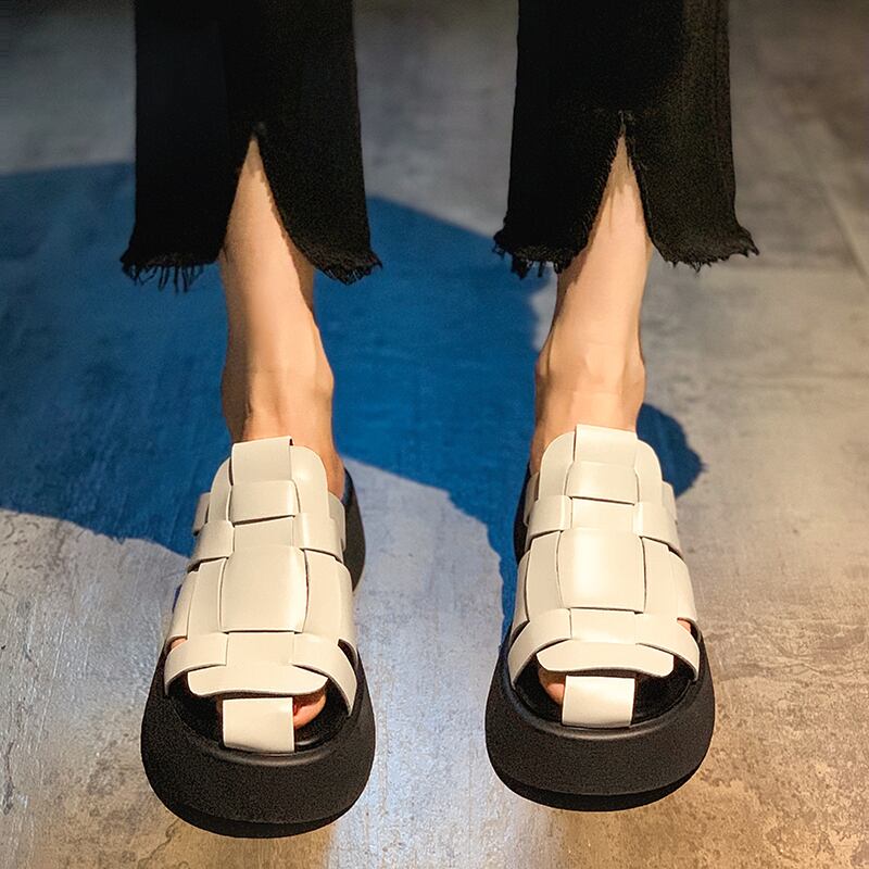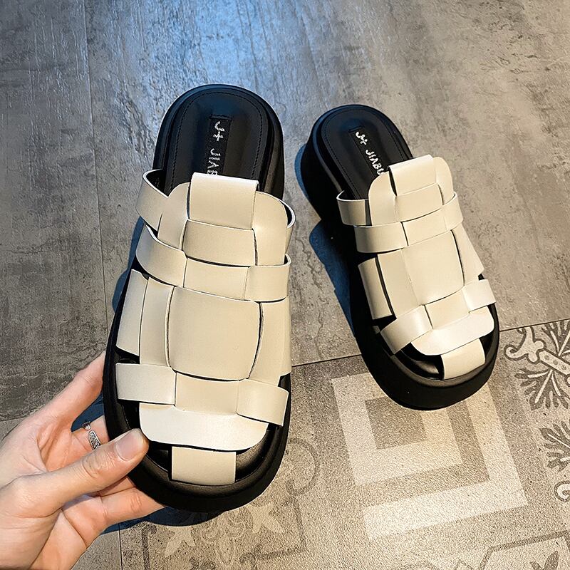レディーススリッパは2022年夏の新しい厚底滑り止めファッションオールマッチレトロ織り包頭サンダル夏を着用 ミュール 靴 シューズ サマー 夏物 jxjxf56107629701