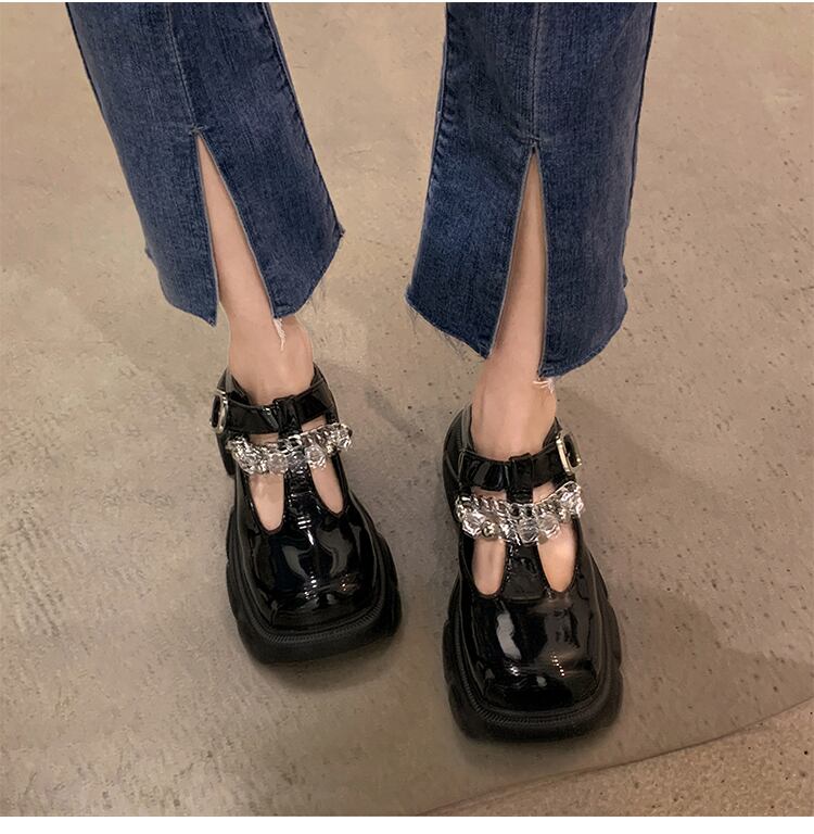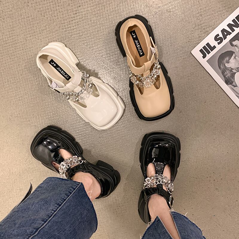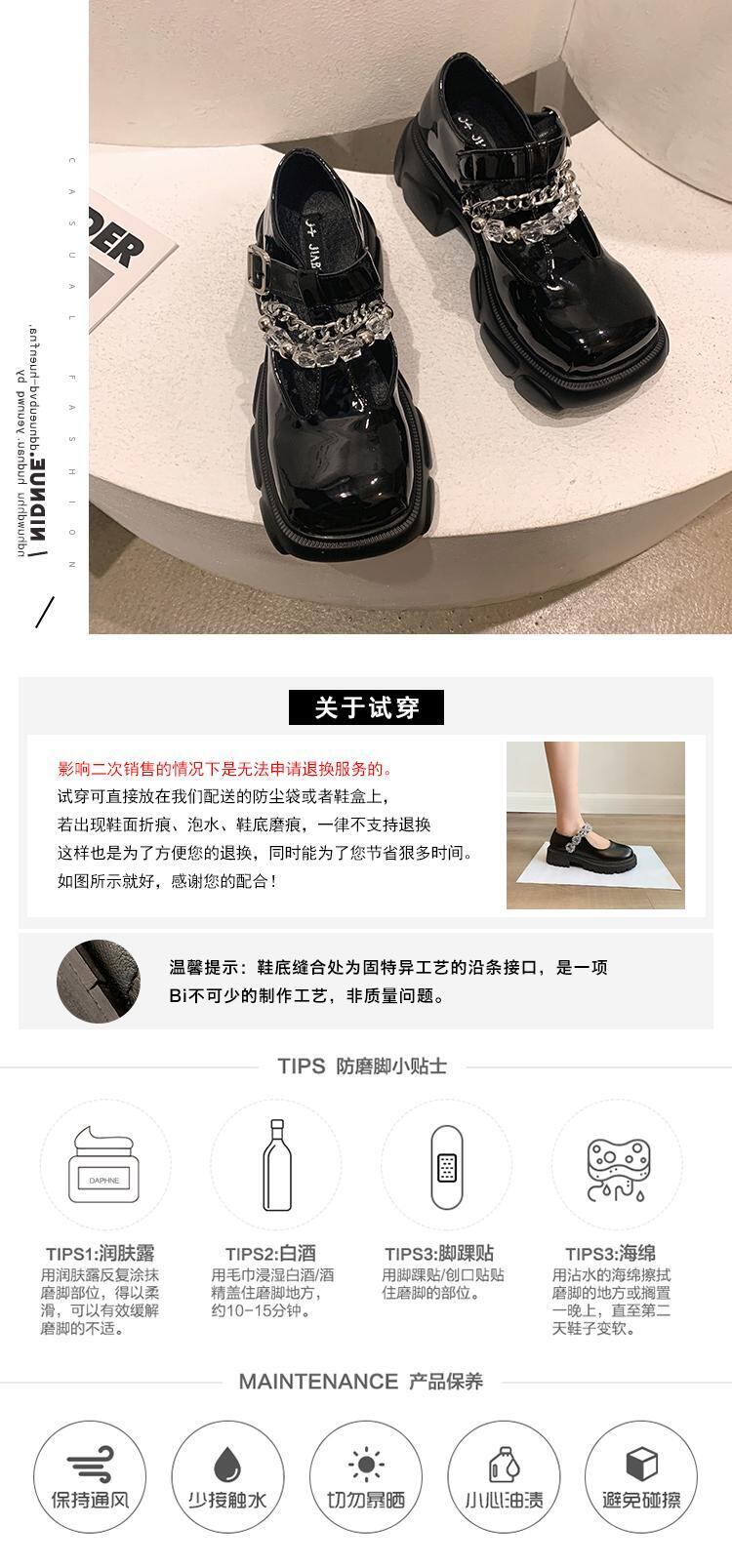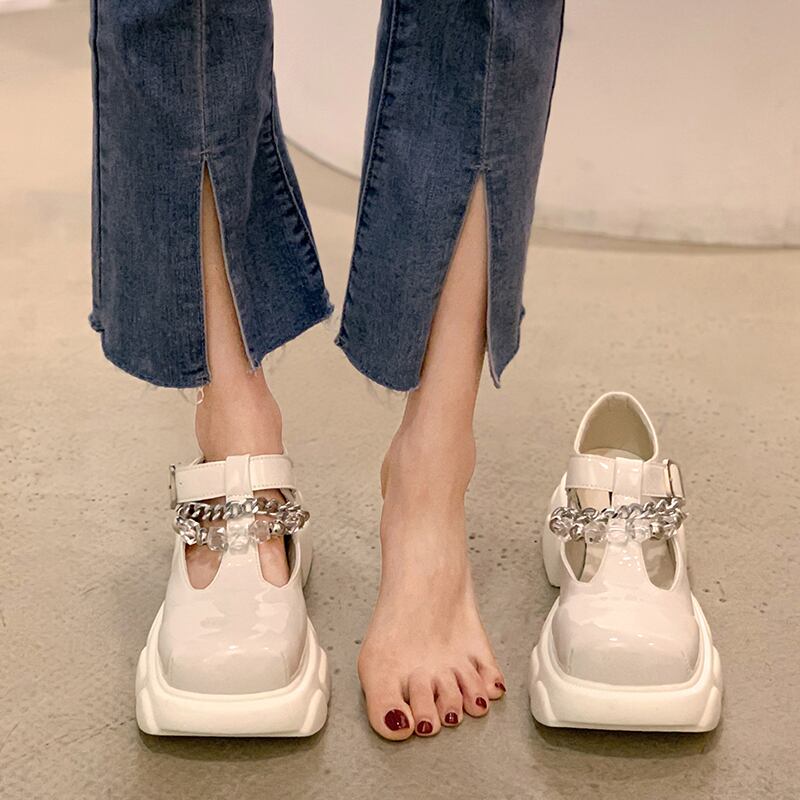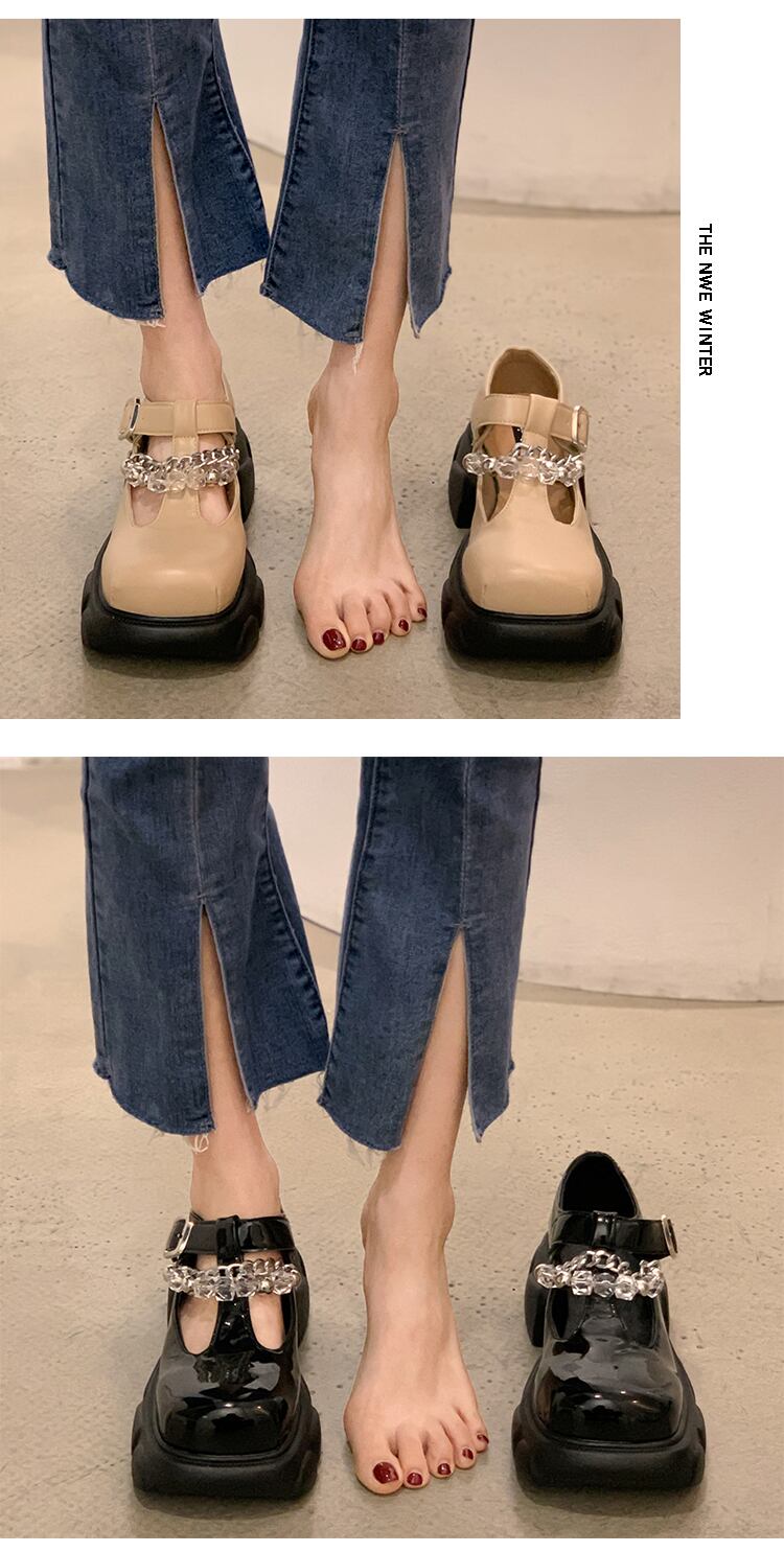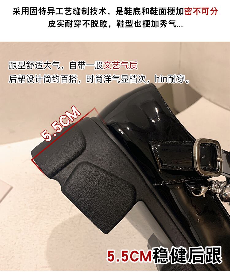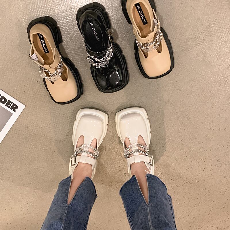 小さな革の靴女性の2022年夏の新しいチェーンスクエアヘッド厚いヒール滑り止めファッションオールマッチ英国スタイルのレトロな靴 シューズ サマー 夏物 レザー スクウェア jxjxf85339863839