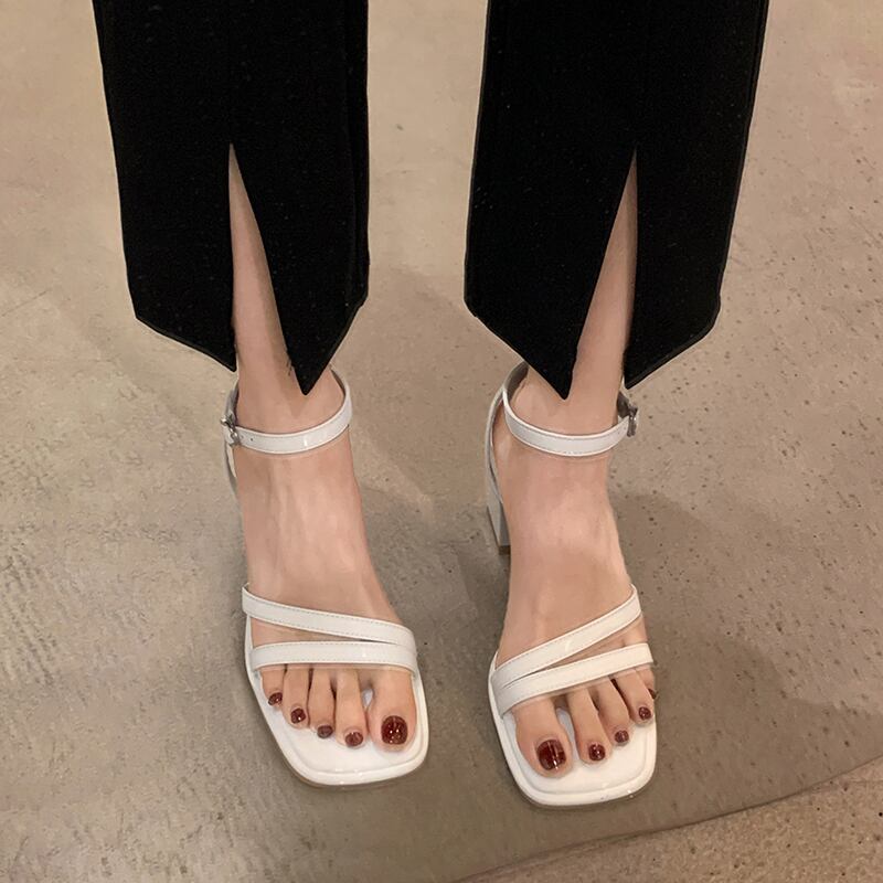 サンダルサマーウィメンズ2022ニューネットレッドスーパー気質オールマッチ厚手のヒールスクエアヘッドハイヒールサンダル 靴 シューズ 夏物 スクウェア jxjxf79673678031