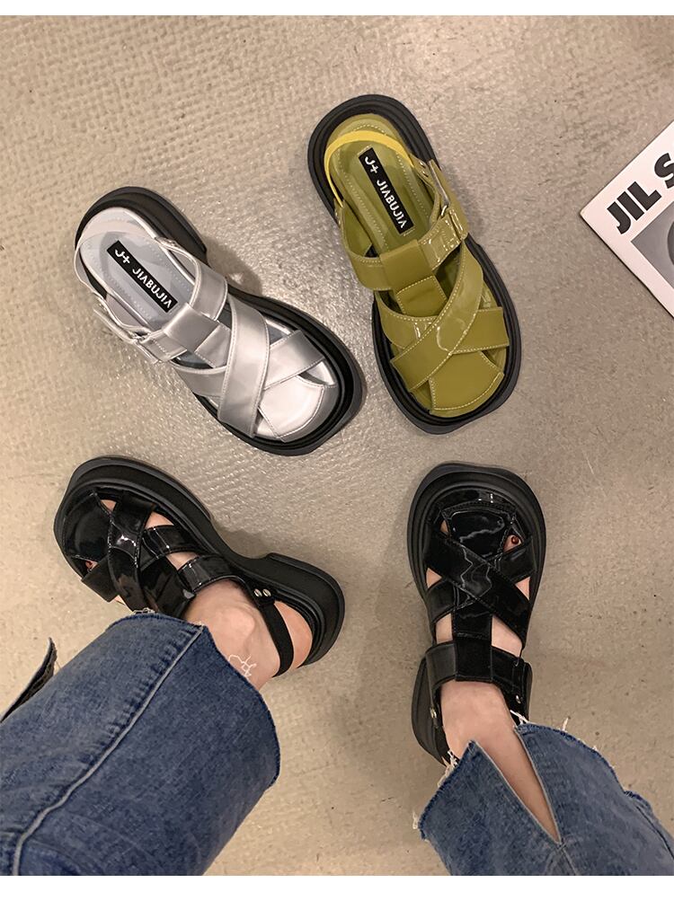 包頭サンダル女子2022年夏ベルクロシックヒールノンスリップネットレッド多用途レトロピッグケージシューズ 靴 サマー 夏物 jxjxf10287440107