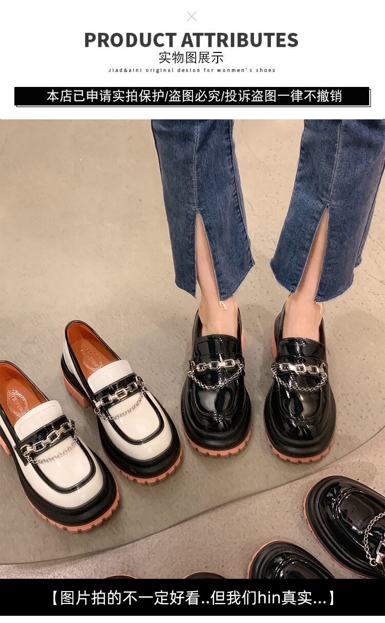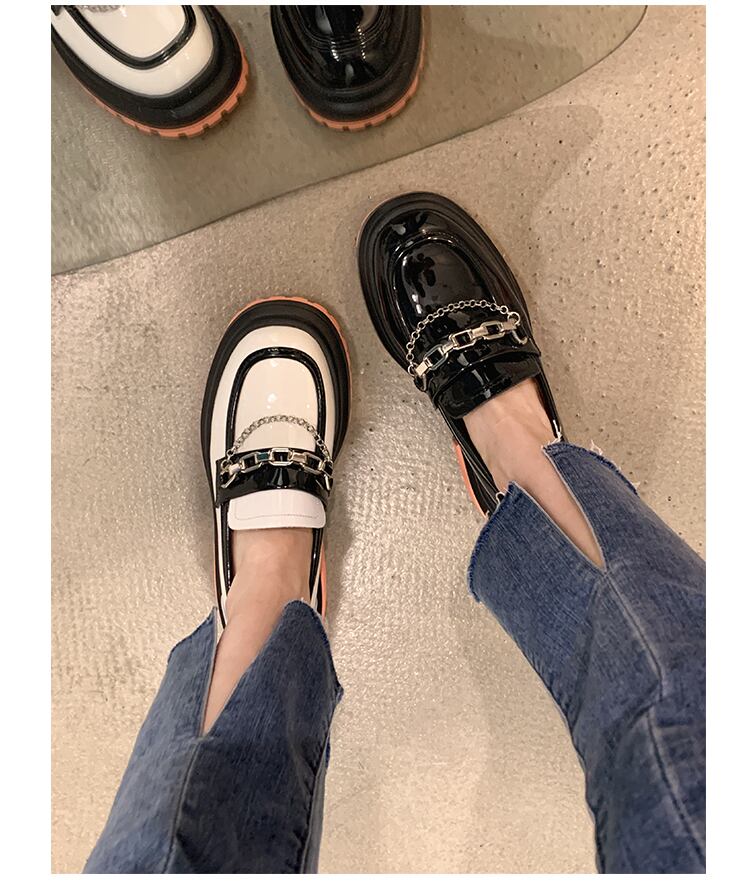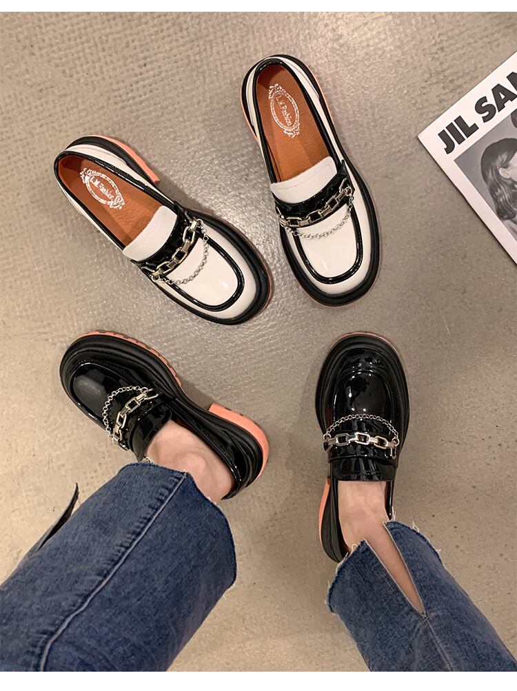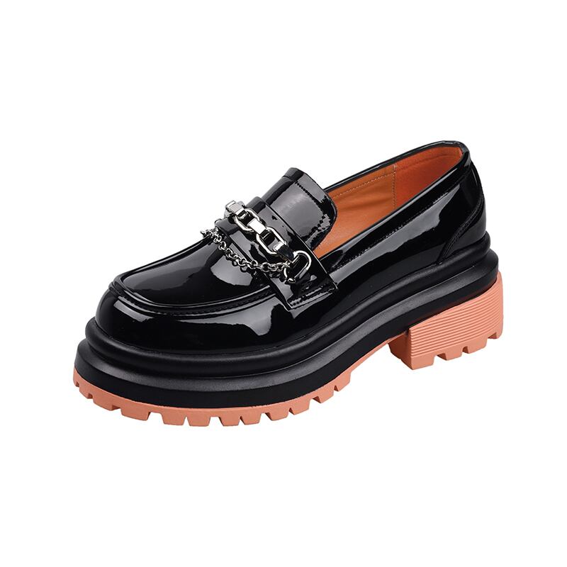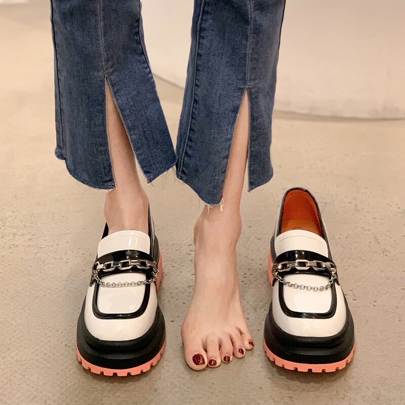 小さな革の靴女性の2022年夏の新しいチェーン厚いヒール滑り止めファッションオールマッチese大学レトロローファー シューズ サマー 夏物 レザー jxjxf6503013087