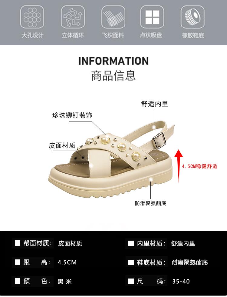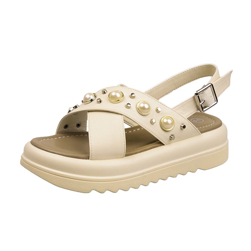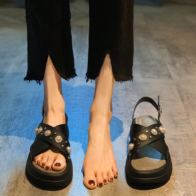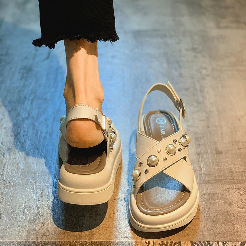レディースサンダル2022年夏新しいファッションオールマッチレトロパール学生スポンジケーキ厚底滑り止めビーチシューズ 靴 サマー 夏物 真珠 jxjxf90640523812