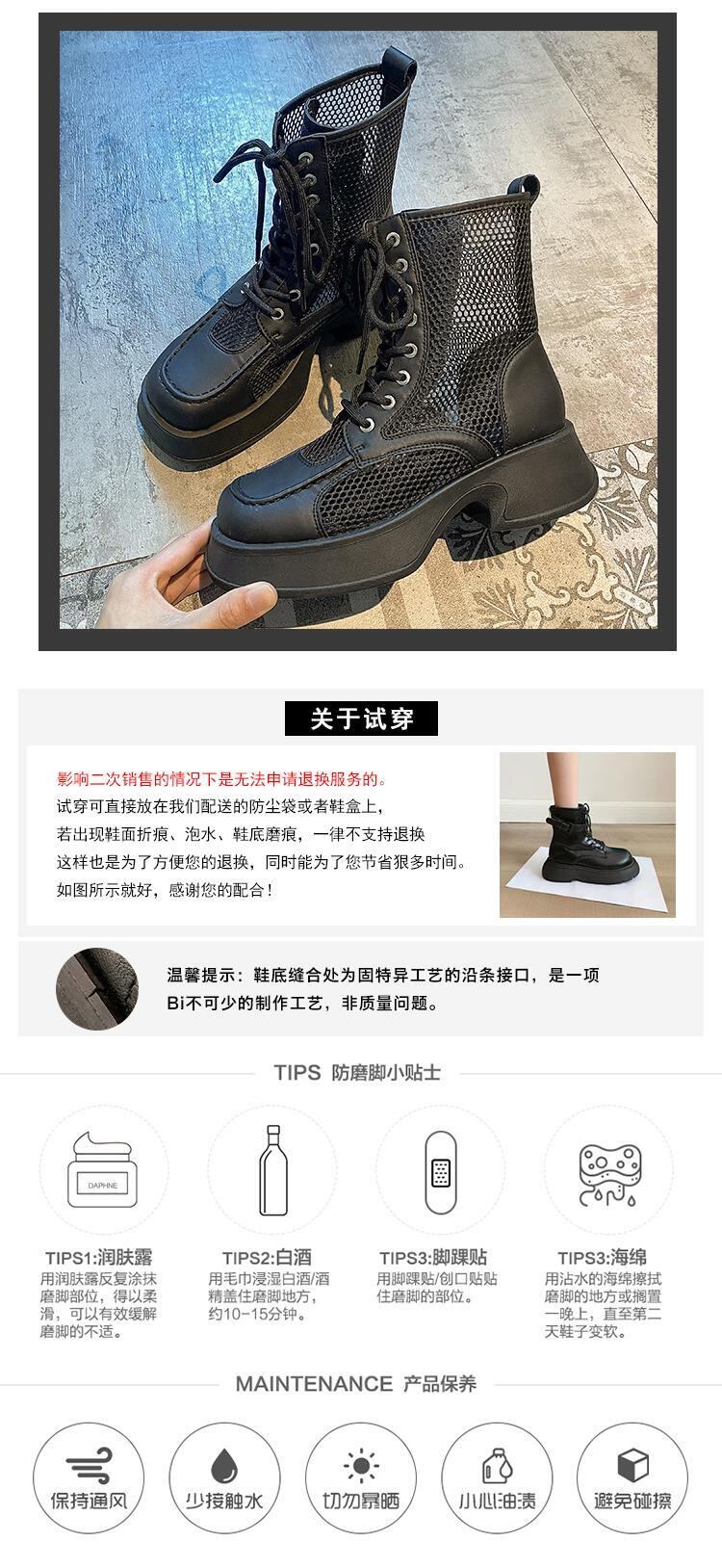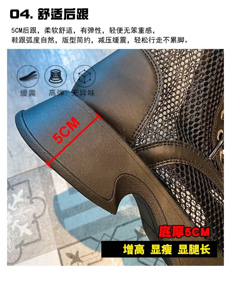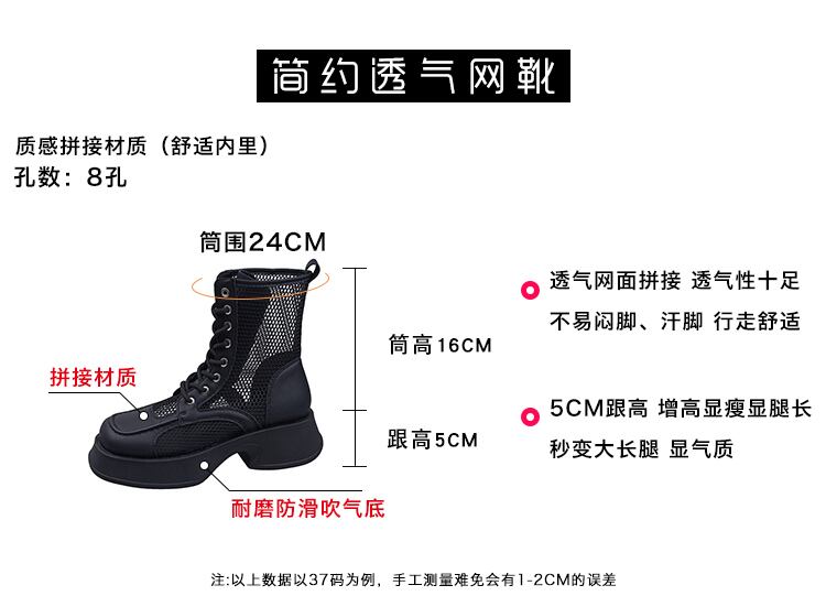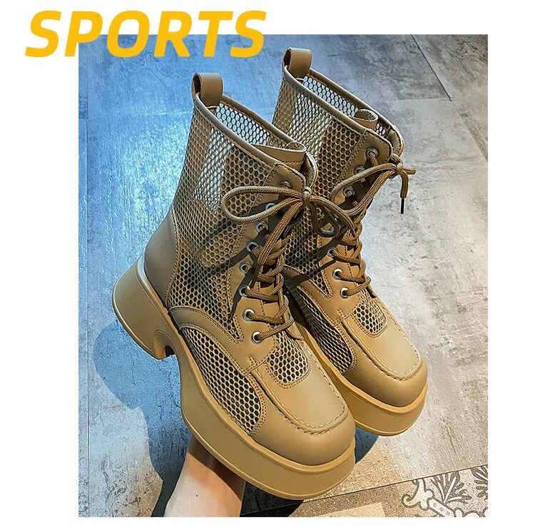 サマーネットブーツレディース2022新しい中空通気性厚いヒール滑り止めファッションオールマッチ英国スタイルのレトロなクールなブーツ 靴 シューズ 夏物 jxjxf41222595191
