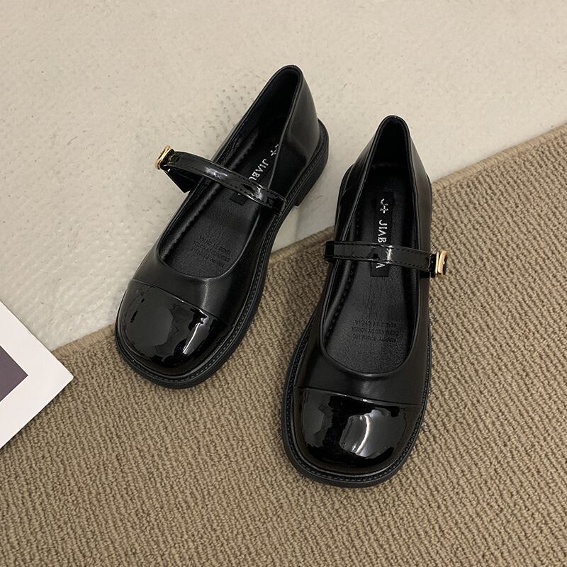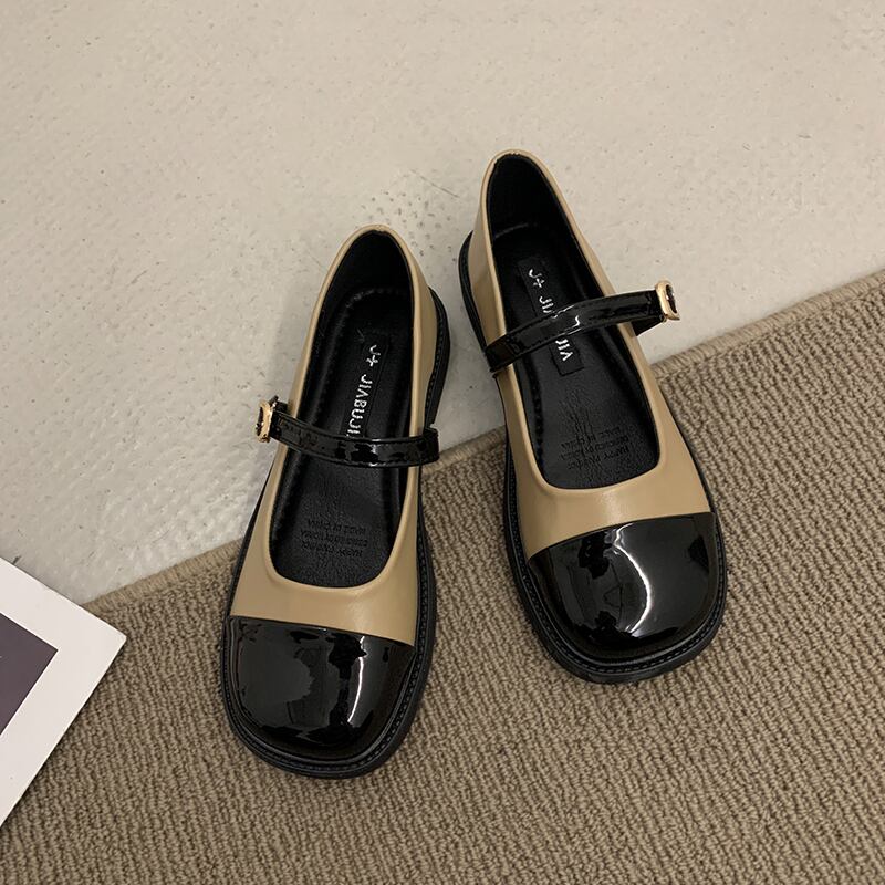 JiaBuフェイクフラットシューズレディース2022夏新しいレトロカラーマッチングeseワンワードバックルメアリージェーンレザーシューズ 靴 サマー 夏物 jxjxf12853931472